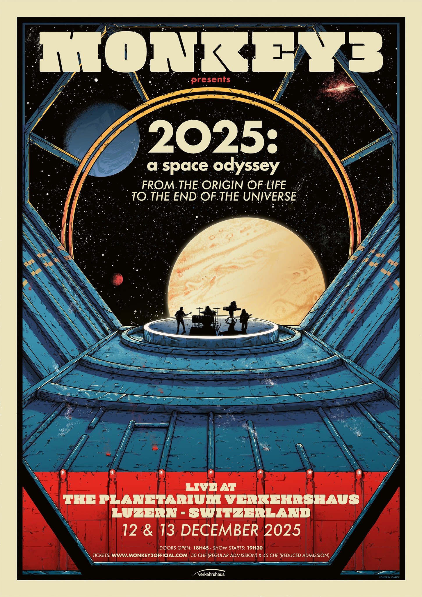 Il s’agira aussi d’explorer l’inconnu d’un point de vue scientifique en se faisant accompagner par un des groupes les plus émoustillant de la Francophonie qui a répondu OK quand il a été contacté par cette institution nationale qu’est le musée lucernois. L’instigateur de la chose c’est Lukas Ritzel un fan de Monkey3 proche de la direction du Planetarium (que nous remercions pour cette idée brillante) qui a établi le contact avec la structure qui cherche à développer des collaborations artistiques afin d’aller au-delà de l’aspect scientifique et académique. « Une expérience mêlant l’art, la culture et la science » qui a trouvé naturellement un écho compte-tenu de l’intérêt des musiciens pour la thématique cosmique.