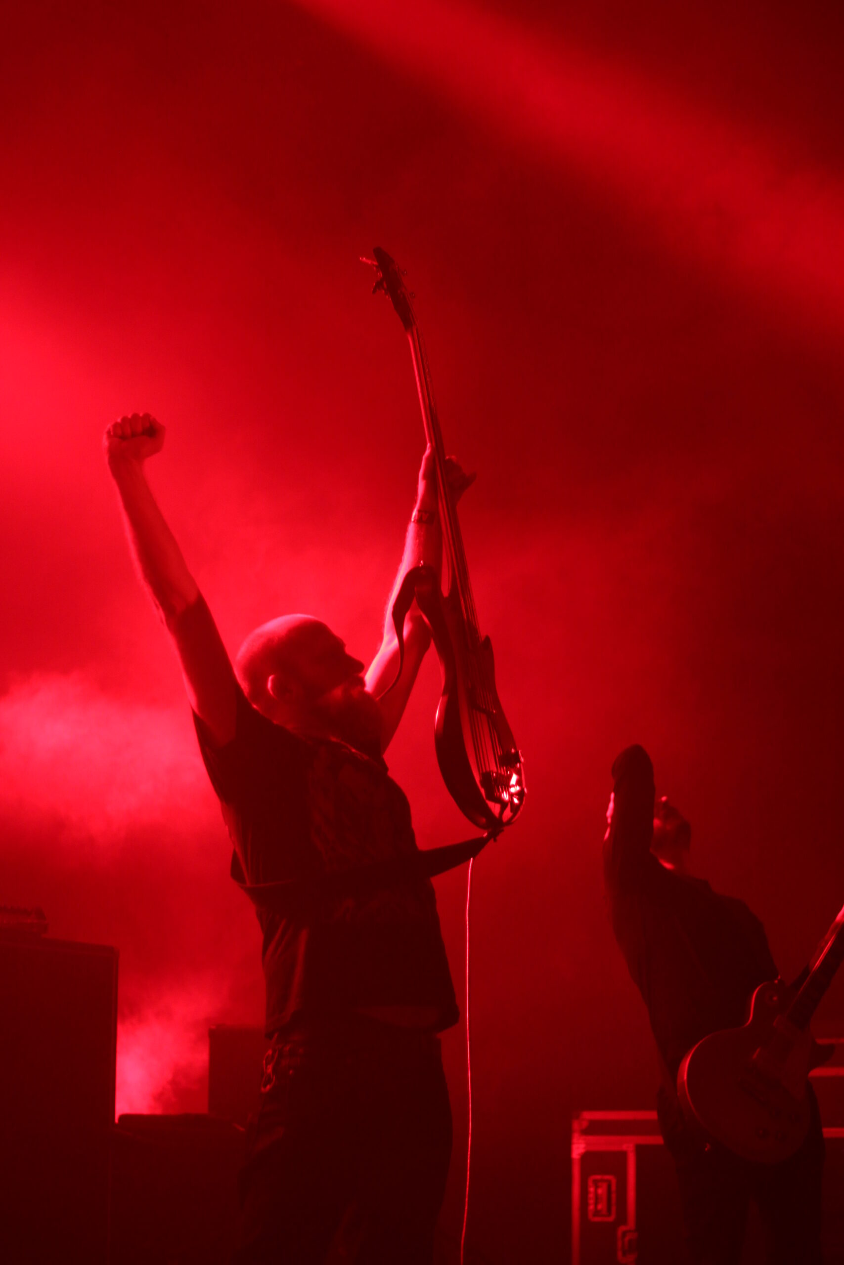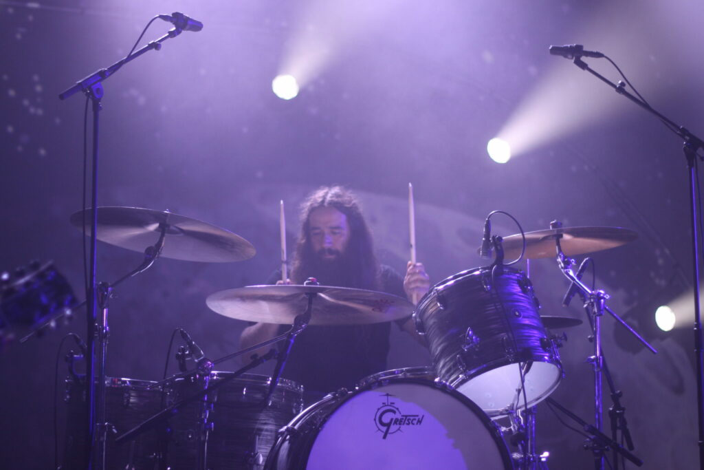 On commence avec un projet fou qui avait tout pour être la tête d’affiche. Mars Red Sky, Monkey3 et le mix des deux Monkeys On Mars. Je ne peux que reprendre tout le bien que vous avez déjà pu lire/entendre sur ce projet et en rajouter une couche. Deuxième date de la tournée, les groupes ont encore quelques petites choses à régler selon leurs dires mais côté public, on ne s’aperçoit de rien et on est déjà proche de la perfection. Mars Red Sky commence avec 4 titres issus de 4 albums différents. C’est à la fois planant et prenant avec un public qui se laisse prendre dès les premières notes. Sur “Strong Reflection”, Monkey3 rejoint le groupe et termine le morceau avant d’enchainer avec leur propre set principalement articulé autour du formidable Welcome to the Machine. Qu’est ce qui n’a pas encore été dit sur la perfection de ce groupe en concert ? Une fois de plus la formation helvète fait preuve d’une maitrise absolue et reçoit des applaudissements plus que nourris et mérités. Sur “Through the Desert”, retour sur scène des membres de Mar Red Sky pour que l’ensemble se transforme en Monkeys on Mars. Le groupe interprète alors les deux titres du EP et on vit un moment d’exception. Ce projet avait sur le papier tout pour devenir exceptionnel, et exceptionnel il est devenu. C’est une chance d’assister à ce genre de moment et le public ne s’y trompe pas, l’ovation est unanime. Brillant.