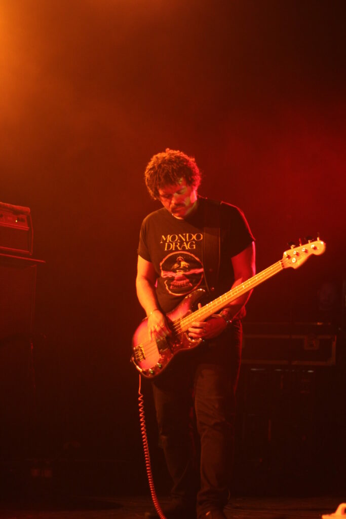 Dernier concert de la soirée avec un ancien de la scène, Nick Oliveri et son Mondo Generator. On a beau dire on a beau faire, ce mec assure toujours autant et même s’il a ses détracteurs, il a aussi ses fans qui se sont régalés du début à la fin. Le bougre sait y faire en articulant son set sur des titres en mode best of tout en plaçant des reprises des groupes qui l’ont rendu célèbre à savoir Kyuss (“Supa Scoopa”, “Green Machine”) et QOTSA (“Millionaire”). Dans la liste infinie des guitaristes qui ont fait partie du groupe, Mike Pygmie s’y tient avec 13 années consécutive de présence dans le groupe, signe d’une entente parfaite avec Nick, et sur scène la complicité est évidente. Côté batterie, les plus attentifs auront reconnu Jon O Garrett (Mos Generator, Weedeater, Turbid North etc.) qui est loin d’être un manchot et fait plus que le job en apportant une énergie supplémentaire. Puissant et rageur, un set qui clôture admirablement cette première journée avec un public qui chante et se secoue, balaçant les derniers soupçons de force qui leur restent.