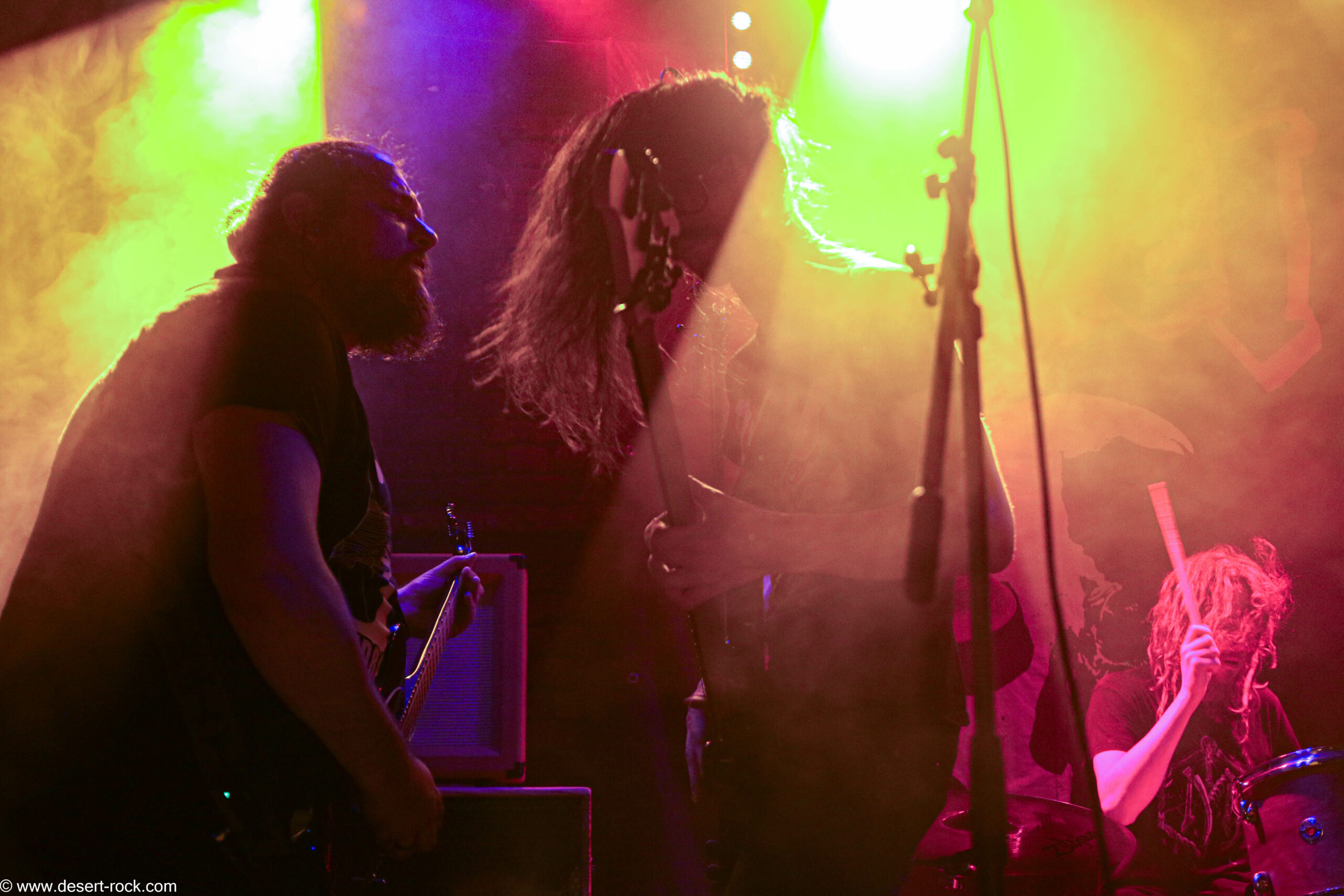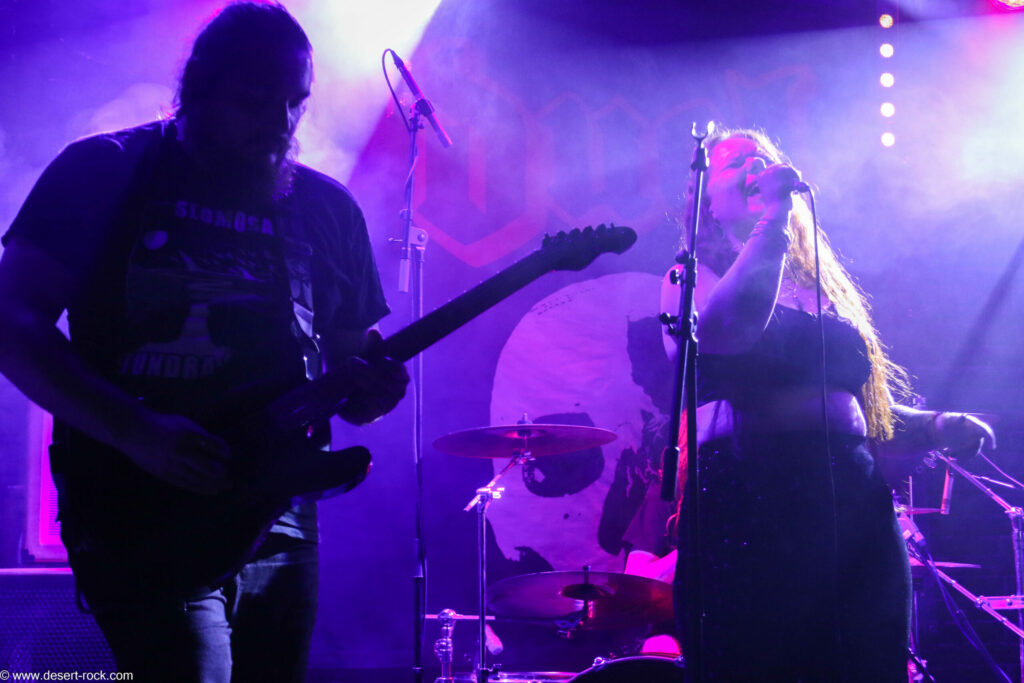 Behold The Monkey n’est pas venu faire dans la poterie, mais pour “casser des culs”, comme le dit si bien leur promo. Leur stoner navigue entre blues rock énervé et passages nettement plus rock. On capte au vol quelques plans et sonorités qui rappellent Red Fang, notamment grâce au duo basse/guitare qui envoie sévèrement les watts avec des compos bien enjaillantes. Au centre de ces messieurs qui grattent, slappent la fusion rock et jazz et matraquent les fûts, on ne peut échapper à l’énergie brute de la frontwoman, qui porte littéralement le groupe. Ce dernier n’oublie pas de jouer pied au plancher, sans jamais ralentir, même quand une balade s’amorce pour finir en cavalcade échevelée. Un set mené d’une main de maître, et clairement tourné vers le public.