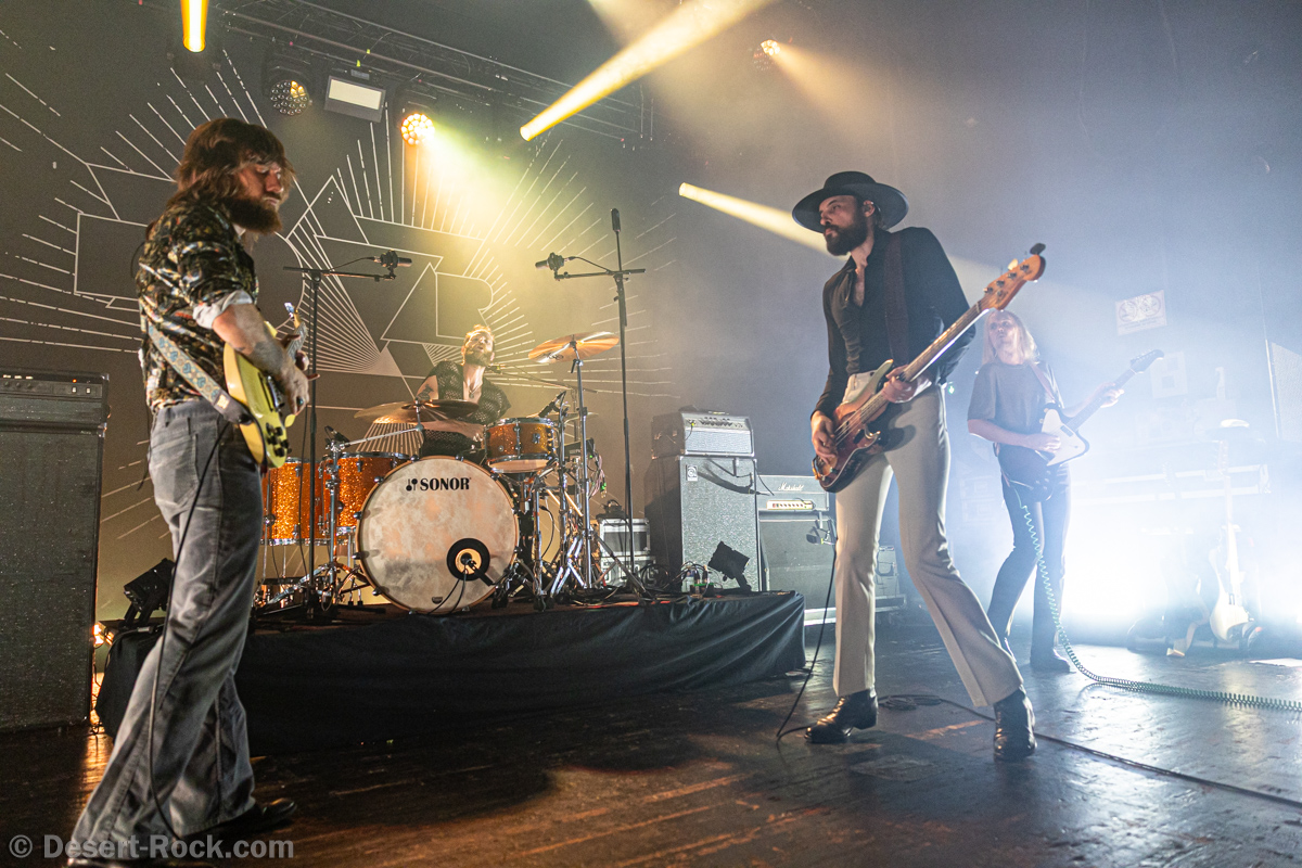 Au vu de son ascension qui ne semble pas ralentir, on pense très fort que Slomosa aurait probablement pu faire cette tournée en tête d’affiche… mais les norvégiens n’ont pas encore fait jusqu’ici de mauvais choix de carrière, jamais prétentieux, toujours en position de se challenger par rapport à une saine concurrence. On peut donc leur faire confiance, et cette tournée en première partie de Kadavar, superbe machine live s’il en est, semble sur le papier une excellente idée… d’autant plus pour nous, le public ! Ça commence vite et fort : enchaînant les tournées depuis des mois (années ?) le quatuor norvégien (oui, quatuor car le troisième guitariste inutile n’est pas de la partie sur cette tournée) est parfaitement rodé et n’a pas perdu le rythme. Ils enquillent donc direct en quelques secondes sur le mode « efficacité optimum », dans un véritable exercice de démonstration pure : interprétation sans faille, chant impeccable, activité scénique perpétuelle (on commence même à retrouver des petits gimmicks et signatures comportementales propres au groupe…).