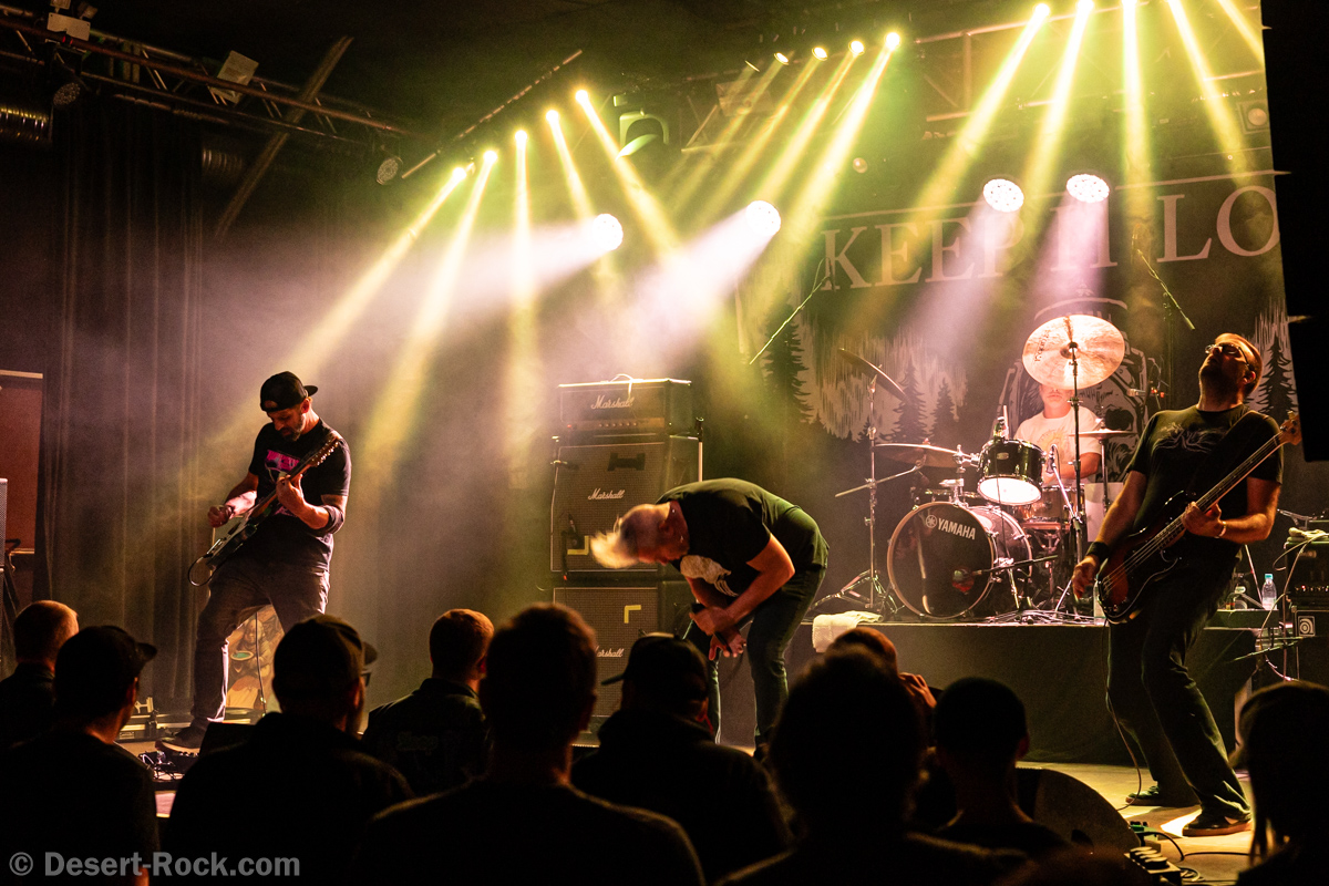 Les américains, avec 3 albums discrets sous le bras (2 et demi, disons), sont pour la première fois en tournée européenne et en profitent pour faire une escale au Keep It Low. Même si le groupe n’est pas ancien, sur la scène ce ne sont pas des jeunots, et ça sent le sérieux : ça joue bien et fort (mention spéciale au batteur, surexcité derrière son kit, tandis que le guitariste et le bassiste sont plus sages sur leur côté de la scène). L’entame (et la majorité du concert en fait) fait la part belle à la seconde galette du groupe (leur 3ème disque vient à peine de sortir), propice à faire découvrir au public leur stoner rock puissant et varié, avec des passages plus aériens et d’autres plus rentre-dedans (à l’image du très Kyuss-ien « Marigold », extrait de leur dernière galette). Jadd Schickler leur chanteur (par ailleurs à la ville manager de plusieurs labels prestigieux, dont Magnetic Eye ou Blues Funeral aujourd’hui, ou Meteorcity en son temps) apporte ce petit bonus au groupe en proposant des lignes de chant clair ou hurlées efficaces. A noter que le groupe termine son set par sa reprise du « Head Like a Hole » de Nine Inch Nails, qui s’intégère bien (sans déchaîner les foules non plus…). Un très bon set, qui serait meilleur avec un peu plus d’aisance scénique – constat magnifié en particulier après le set de leurs successeurs sur la grande scène…
