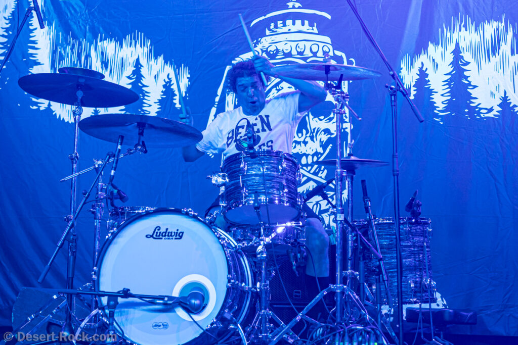 En quelques secondes, High Desert Queen a tout simplement conquis le Keep It Low. Le gros riff de « Palm Reader » en intro, le sourire et l’énergie du chanteur Ryan Garney, il n’en faut pas plus ! Sur disque pourtant, la musique sympathique du quatuor a du mal à se détacher de la « concurrence » de dizaines d’autres groupes dans des sphères musicales proches ; intéressant, mais manquant de « caractère ». Sur scène, c’est une toute autre paire de manches : comptant notamment sur Jason Casanova (bassiste de Sasquatch) à la 4-cordes, le groupe aligne les compos avec une vraie envie d’apporter du plaisir à l’auditoire. Garney arpente la scène avec le sourire (tellement rare chez les autres groupes !), s’adresse au public, interagit avec ses collègues, danse, saute,… il est intenable, et capte une large part de l’attention. Pendant ce temps, les chansons défilent, presque toutes issues de leur second disque, sorti l’an dernier. En capitalisant sur le groove impeccable de ses compos, le quatuor californien emporte la timbale. De ces surprises qui font tout le sel d’un festival. A revoir, vite !