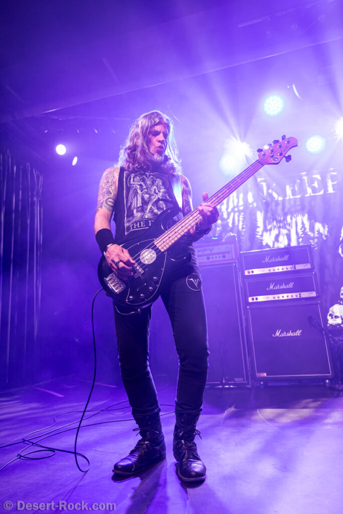 Les 5 musiciens de Lowrider (oui pour rappel il y a désormais un claviériste à faible valeur ajoutée dans la formation) entament le set de ce soir par le groovy « Caldera », issu de leur dernier LP, prétexte à une sorte de jam planante parfaite pour faire monter la pression, même si un peu trop longue. Les choses sérieuses commencent ensuite dès « Sernanders Krog » et se poursuivent pendant 50 minutes de haut niveau. La set list présente peu de surprises, faisant la part belle à ses derniers disques… si ce n’est ce délicieux et rugueux “Convoy V” ressorti du placard à archives, pour lequel le groupe accueille sur scène rien moins que Jadd Schickler pour assurer les chœurs, en rappelant que c’est lui, manager de MeteorCity, qui les a signés pour leur premier album il y a 25 ans ! Un moment de grâce où le groupe se décide enfin à (re)jouer sur scène l’un de ses titres les plus remarquables (même James Hetfield le dit !)… que l’on espère trouver à nouveau dans leurs prochaines set lists ! Quel gâchis de le laisser végéter au profit de chansons parfois moyennes. Comme d’habitude, et ce malgré sa faible quantité de concerts joués chaque année (une poignée de festivals et c’est tout), le groupe est bien en place (on parle trop peu de la qualité de son batteur Andreas Eriksson, qui tient l’édifice avec robustesse et talent) et les titres sont interprétés avec la juste touche de rigueur et de customisation “live”. Bref, efficace et fun, tout ce qu’on attendait !
