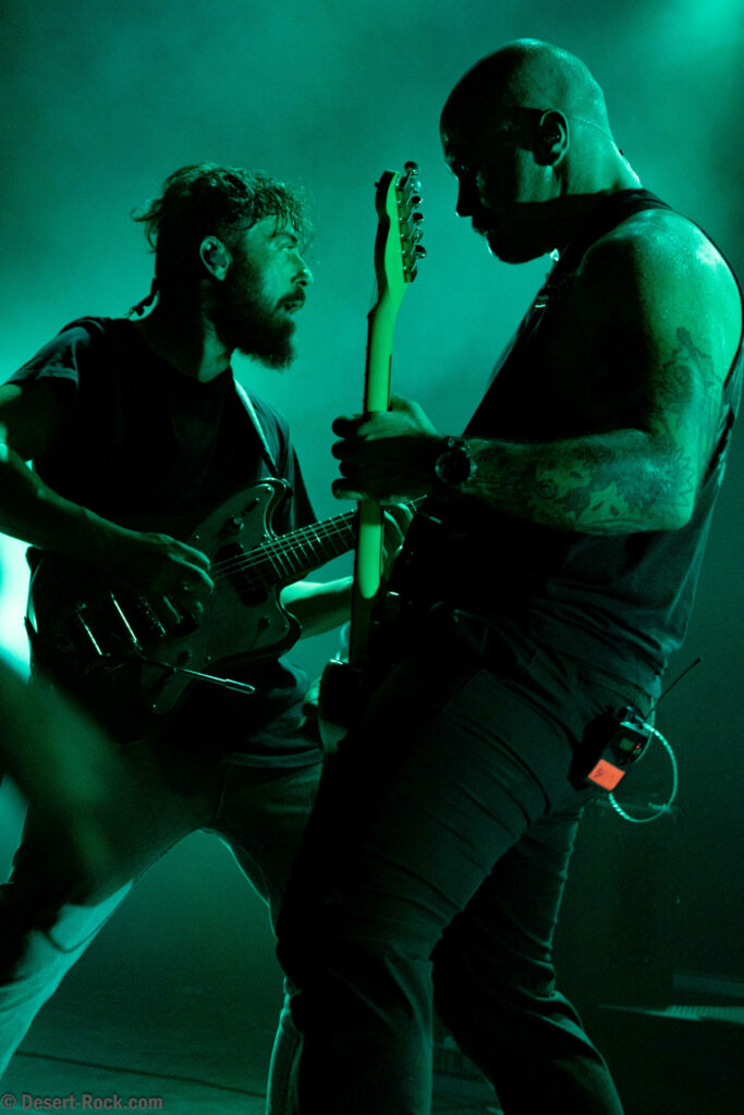 La salle a pris le train pour le désert, mais elle change vite de véhicule : une bande de singes débarque sur scène et promet un voyage vers Mars. Monkey3 et Mars Red Sky sont venus défendre leur projet collectif, Monkeys On Mars. C’est Monkey3 qui ouvre le bal avec notamment “Collapse” et “Rackman”, avant de passer le relais à Mars Red Sky sur un “Through the Desert” collectif.