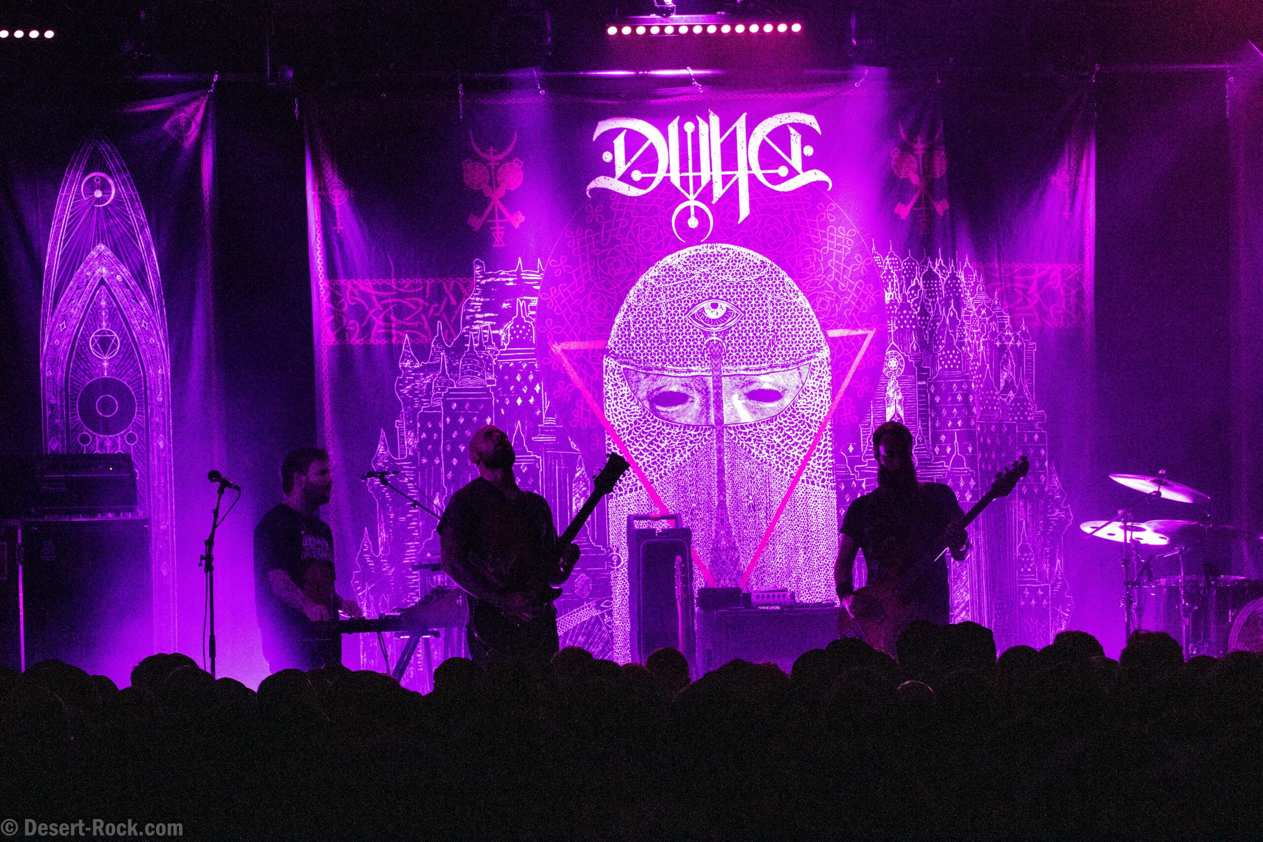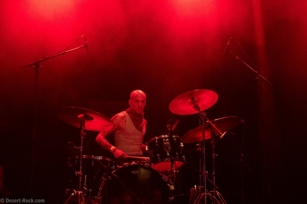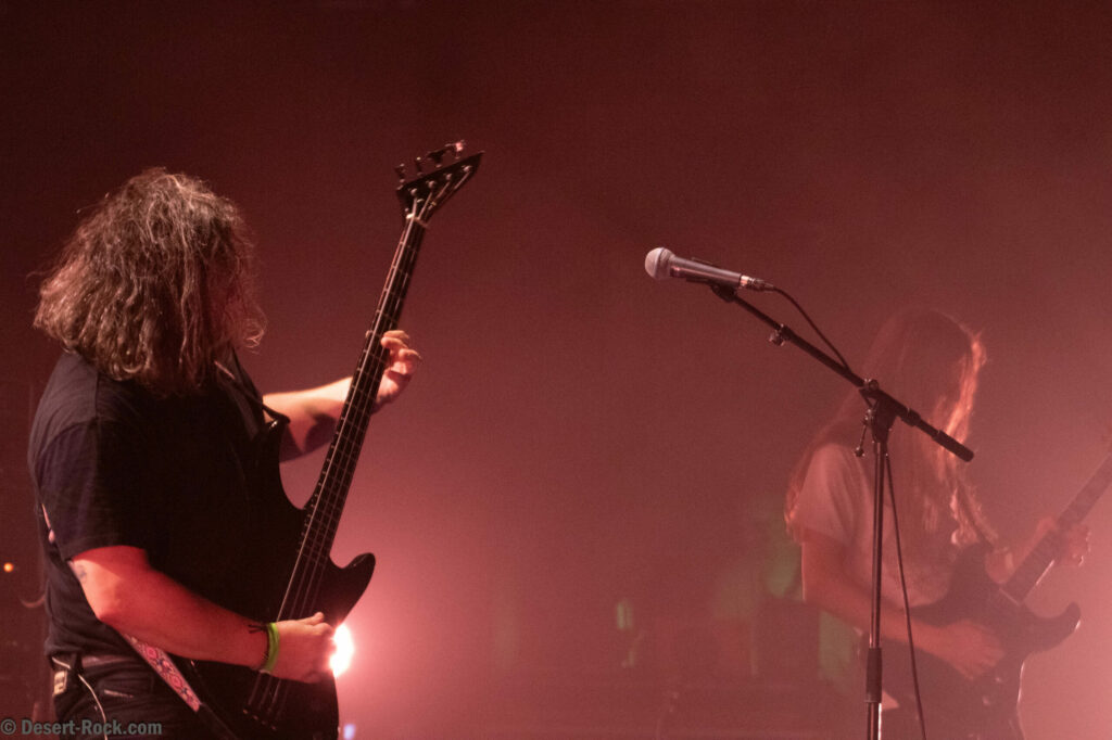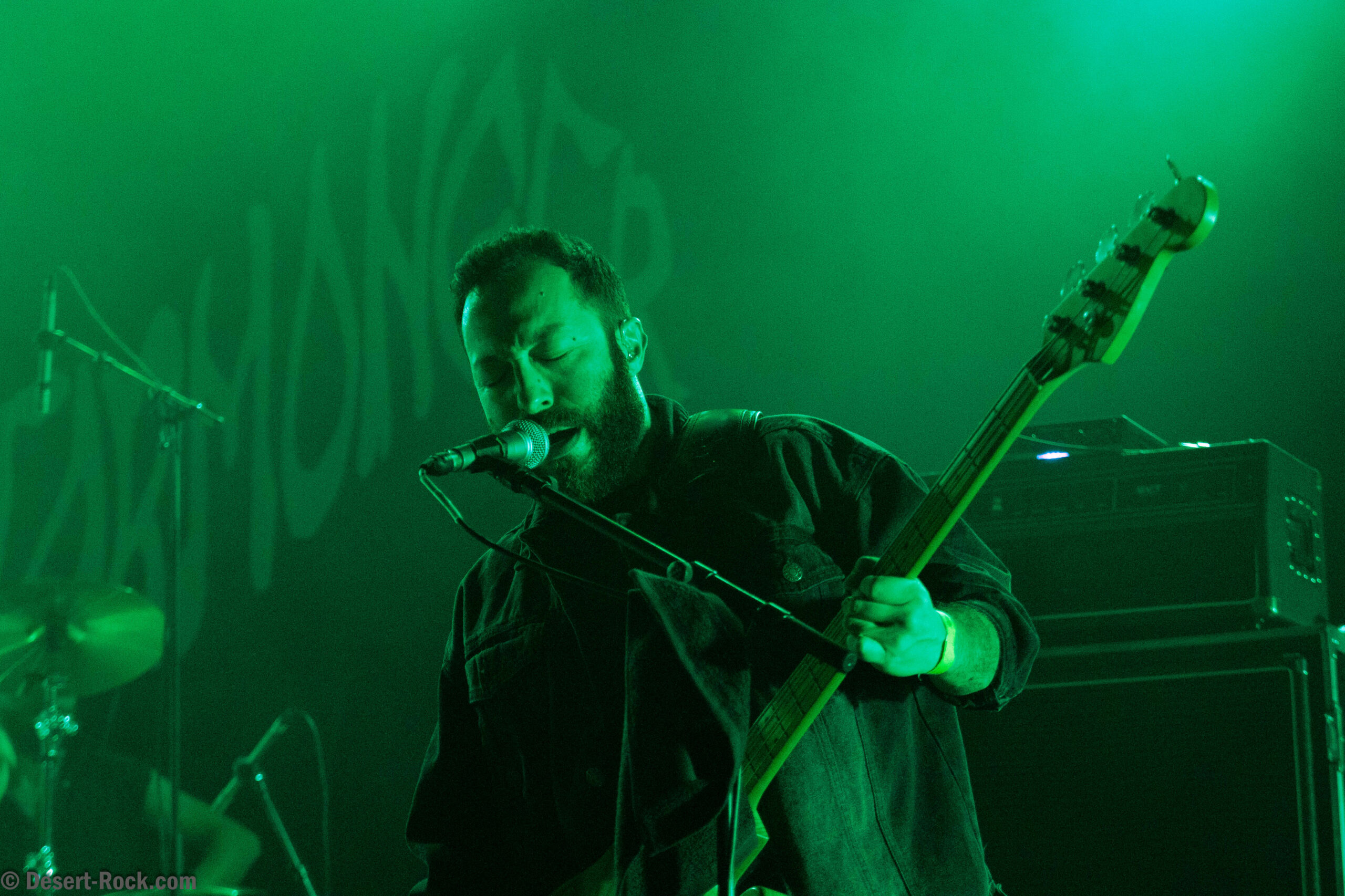 La fin de soirée s’amorce, et on entre en terre de légendes. Elder prend sa part, et les transfuges américains à moitié installés en Allemagne viennent dérouler leur set d’un classique éprouvé, où retentissent “Compendium”, “In Procession” et le final “Gemini”. Le groupe, comme à son habitude, rentre dans sa musique, s’y abandonne et disparaît totalement au profit de celle-ci. Pas grand-chose à voir sur scène, mais tant à ressentir dans le public. Si la salle, au fil de l’eau, se vide d’un quart, c’est que la densité des mélodies est sans doute trop imposante pour le festivalier moyen. Ajouté à cela que le mix n’est sans doute pas des meilleurs, mais l’énergie et l’intention sont là du début à la fin, sans faiblir. Elder y introduit même quelques morceaux de son dernier opus, “Catastatis” et “Merged in Dreams – Ne Plus Ultra”. Le public, malgré tout compact, gratifie le groupe de ses bravos : il ne saurait en être autrement. Elder reste Elder, et même si l’on n’en est pas les plus grands fans, on ne peut que s’incliner devant la sagesse des anciens.