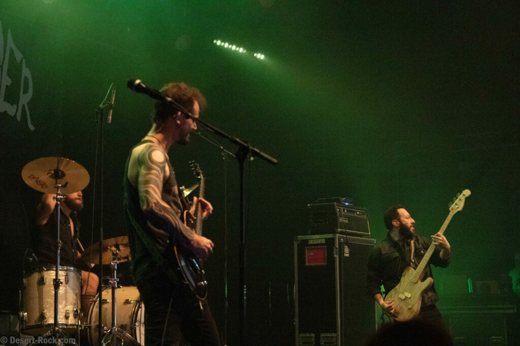 Bénéficiant d’une bonne balance, et même si le set n’est pas exempt d’inexactitudes, le trio démontre sa progression scénique tout en occupant pleinement la scène. Côté public, même si à cette heure-là la foule n’est pas encore compacte, on dénote une concentration satisfaite, quel que soit le point de la salle où l’on se situe, ce qui donnera à une part des auditeurs une juste première impression de ce que peut donner le groupe sur scène.
