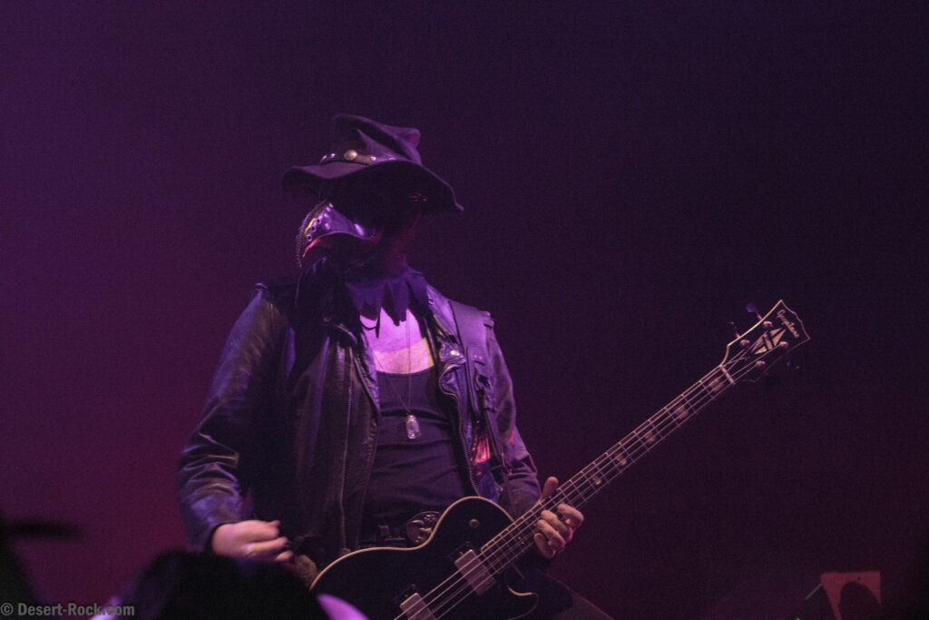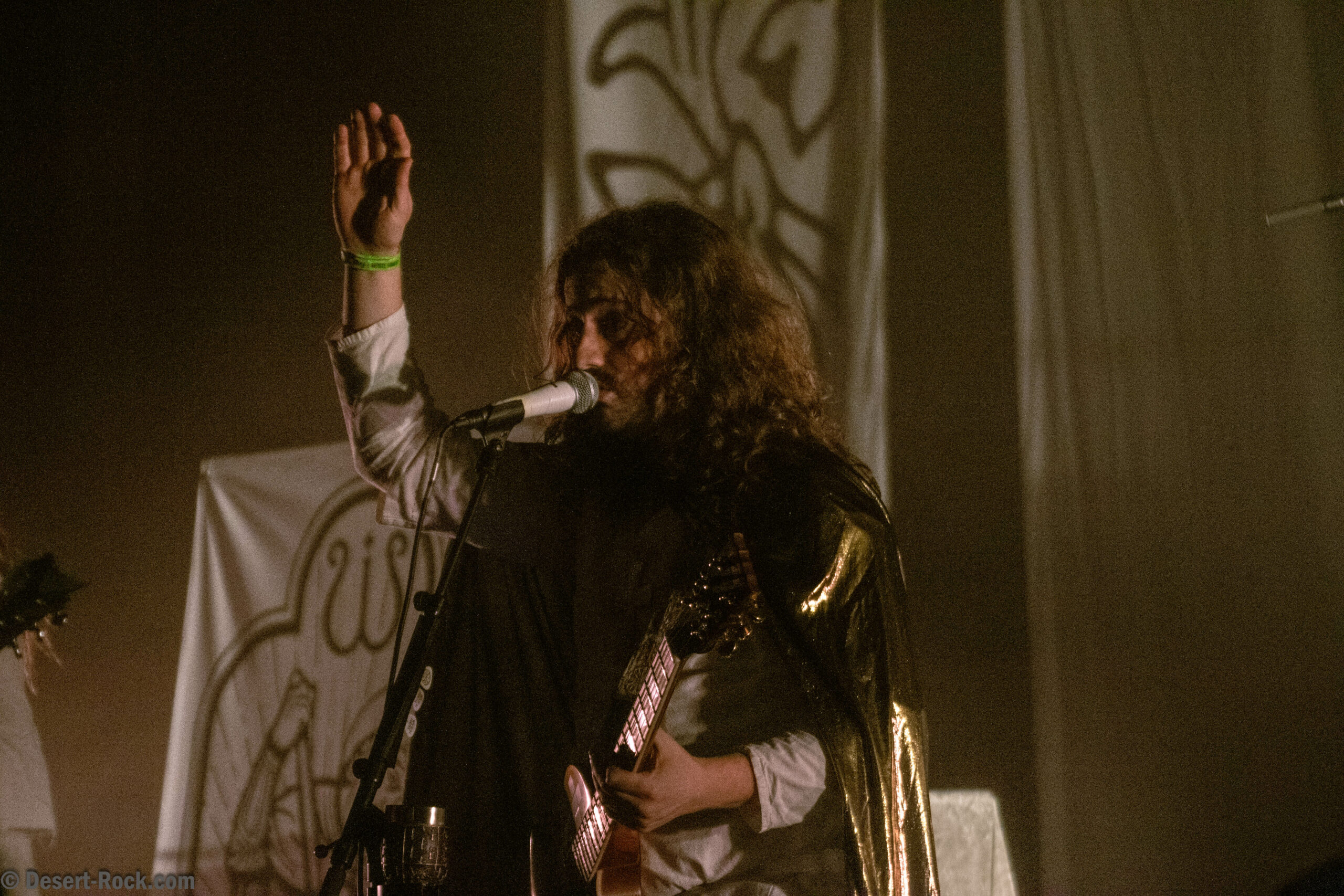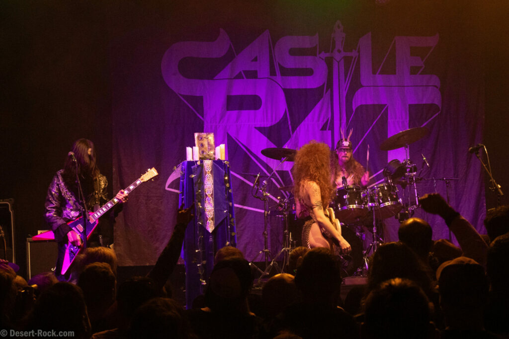 Tant qu’à faire dans le décorum kitsch, laissons la place à Castle Rat, qui entre sur scène comme on entame un rituel aux dieux anciens. C’est un univers en soi : théâtral, inquiétant et sensuel. Peut-être un peu trop d’ailleurs, pour certains qui se demandent pourquoi ces femmes sont à demi nues devant un parterre de mâles bavant d’envie par toutes les pores de leur masculinité ? Ayant assisté à leurs shows à plusieurs reprises cette dernière année, nous captons sans surprise les guitares épiques et le chant puissant de la Reine Rat. La mise en scène heroic fantasy du groupe, où les combats à l’épée et les danses étranges d’un rat-lyche, offre au public un souffle mystique porté par une énergie viscérale qui s’empare de lui. En l’espace d’une heure, les New-Yorkais ont convaincu la fosse tant par leur musique que par leur mise en scène millimétrée.