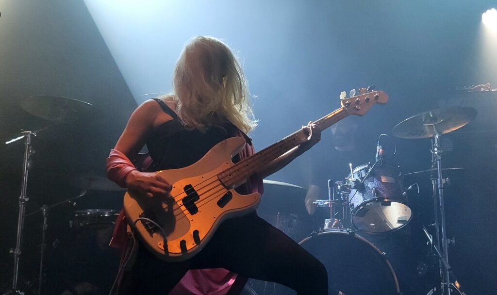 Allez, il est l’heure d’aller se faire masser les tympans par Acid King et je m’aperçois qu’être sorti pour me rafraichir d’une limonade n’était sans doute pas la meilleure idée de la soirée. Il faut jouer des coudes dans le Ferrailleur pour atteindre la scène bien cinq minutes avant le début du set et finir coincer sur le côté gauche de la scène. Là où ira se positionner la guitariste Lori, au final le hasard n’est pas si méchant.