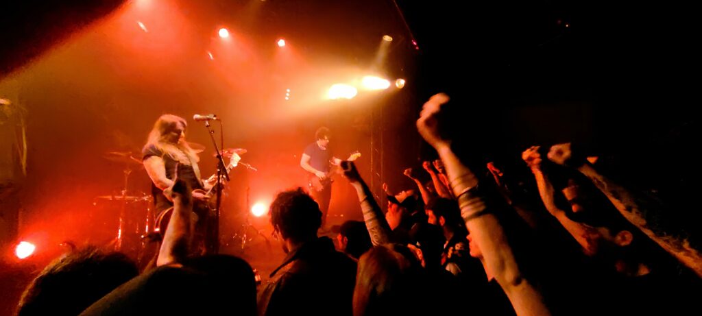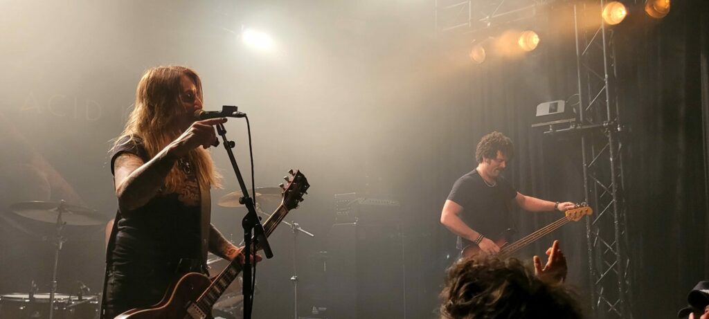 Les Intro mélancoliques donnent vie aux cordes frottées et Jackie et son Violoncelle finissent parc conquérir leur place toute légitime. Cependant la face la plus goth du groupe n’émerge durant tout le set, une chance selon moi. D’ailleurs ces passages les plus mélancoliques et les plus post-rock n’ empêchent pas une joie visible de jouer de s’installer et le public qui jouit de la musique les yeux fermés ne dédaigne pas l’ offrande. Lorsque ce dernier revient à lui le set se termine déjà et si ce n’était pour accueillir Acid King je suis persuadé qu’on en aurait bien repris encore un peu.