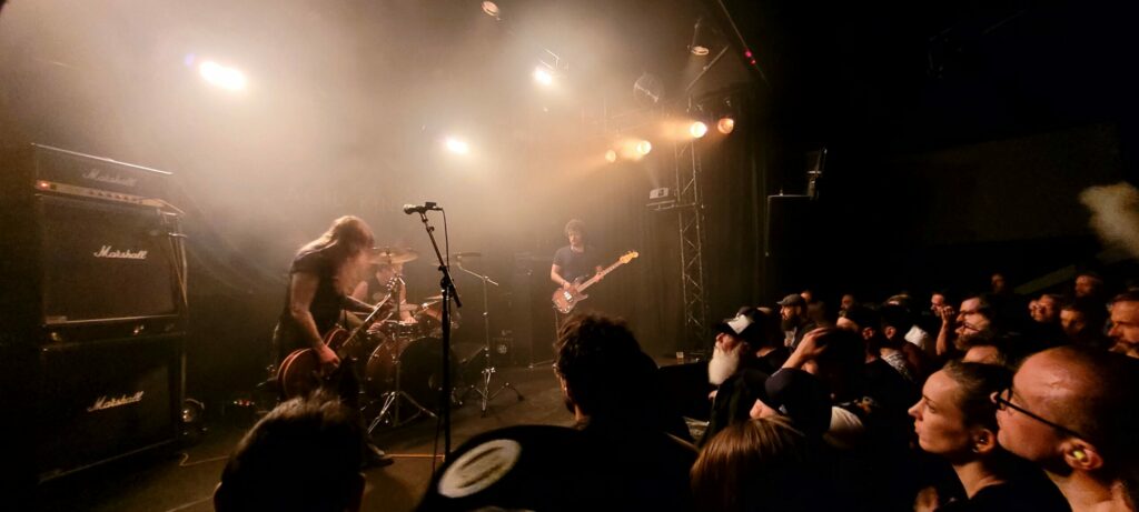 Évidemment côté set list on en prend plein les esgourdes, le groupe faisant le choix de caler quelques désormais classiques comme « Coming Down From Outer Space » entre les titres les plus récents comme « Beyond Vision » et un final magistral sur « Colors Trails » où Acid King pose lui-même sa couronne sur le haut de son crâne alors que le public, un genoux à terre pourra commencer à conter dès les lumières rallumées un chapitre de plus la geste du roi Doom.