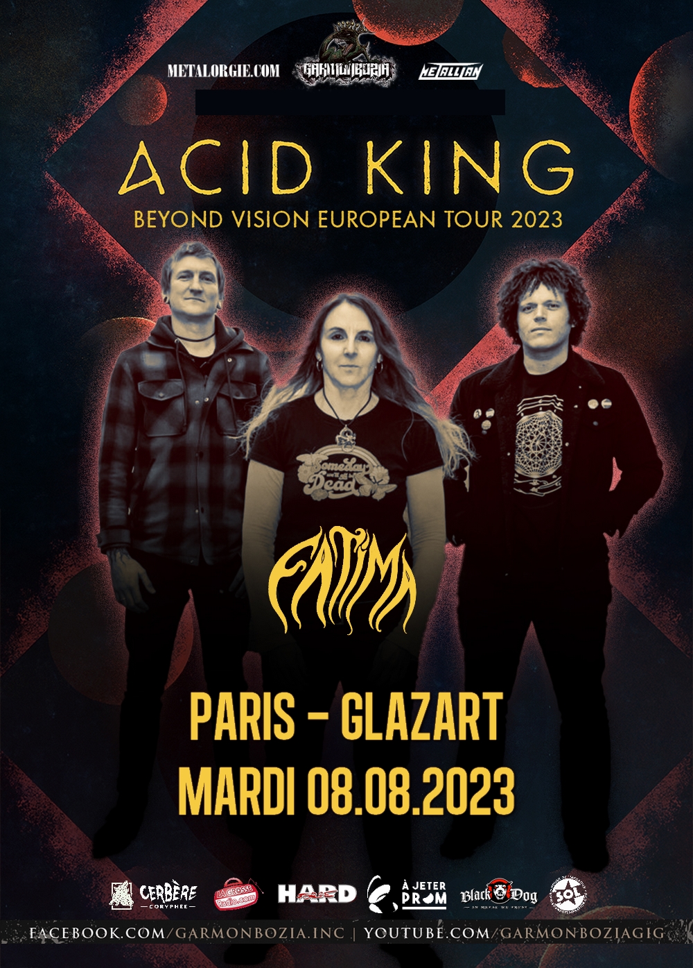 « On a l’impression que la France entière est en vacances » disait Lori S. chanteuse, guitariste et maître à penser d’Acid King dans une interview pour Rock Hard, au moment d’évoquer les difficultés qui étaient les siennes pour trouver quelqu’un pour faire jouer son groupe à Paris en plein mois d’août. Par chance, la situation s’est débloquée : par la grâce d’une alliance entre l’asso lilloise Cerbère Coryphée et les Stoned Gatherings, le miracle s’est produit et Acid King a pu poser ses flycases à Glazart sur la route du Sonic Blast Festival au Portugal.