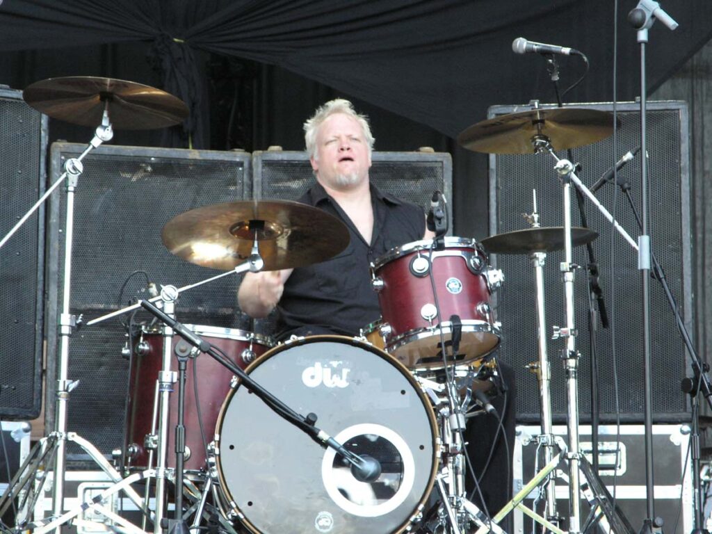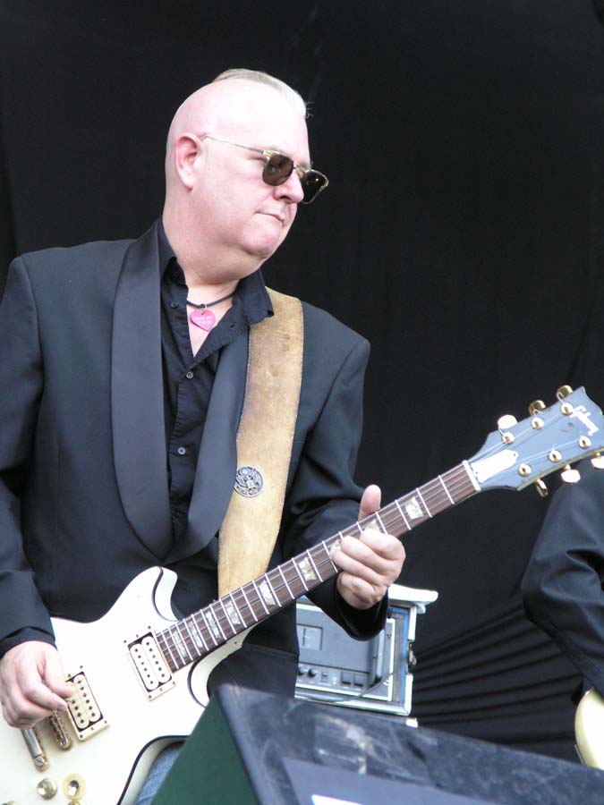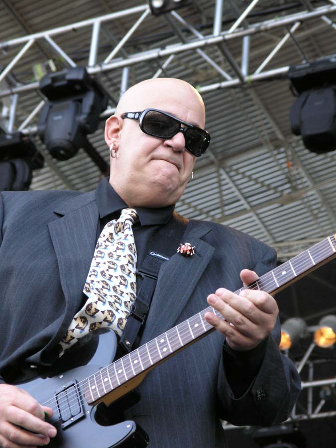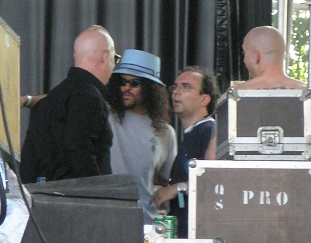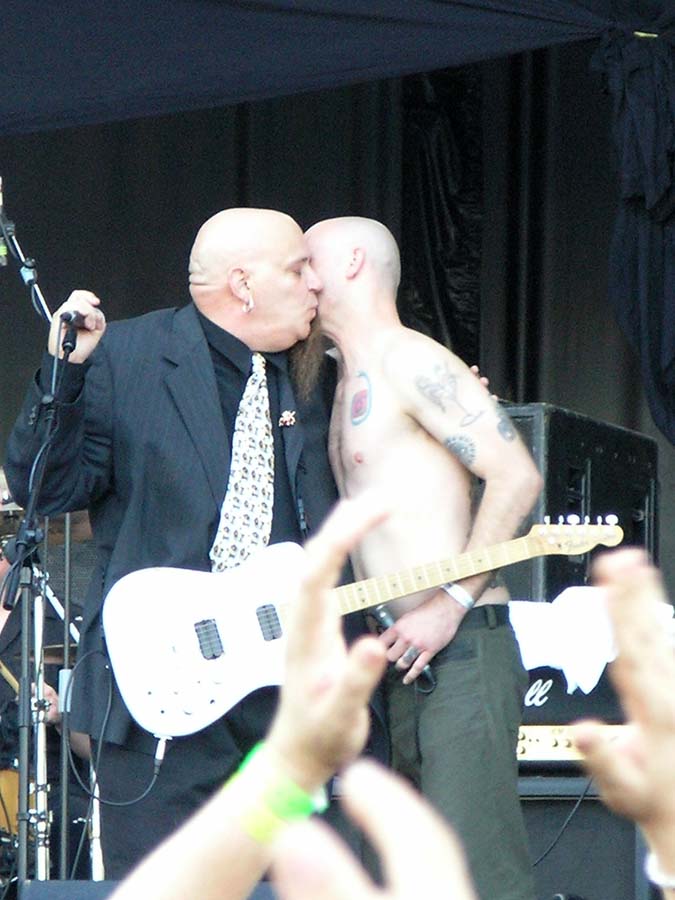 On quitte Gov’t Mule pour retrouver les sympathiques Wilco. Autre groupe culte s’il en est, Wilco est un combo pop-rock-folk ricain réputé pour ses compos efficaces et ses paroles enlevées et drôles. Mais en concert, sans connaître les-dites chansons, après un tel enchaînement de groupes remarquables, ça paraît un peu plat. Ca joue bien, on voit que les musiciens savent tenir une scène, l’ambiance est bonne, le groupe est de bonne humeur. Que de bonnes choses, mais on n’est pas au même niveau musical, tout simplement. C’est en tout cas le sentiment tout à fait subjectif qui se dégage de ce concert. Très sympathique, mais sans relief. Les mythiques punk de Social Distortion embrayent le pas, et le combo de Mike Ness n’y va pas par quatre chemins. Ce n’est pas le punk rock le plus extrême du monde, mais ça reste du punk, ça lasse, c’est rébarbatif. Au bout d’une heure, on a du mal à distinguer les chansons, et le moment est bien choisi pour aller se sustenter dans l’herbe à la belle étoile. Deep Purple prend la suite, et les vieux hard-rockers ont encore la pèche. Mais bon, je vais pas vous la faire, quand on les voit de près, ça fait quand même un peu pitié. Ian Paice est le plus marqué physiquement (même s’il joue toujours bien), Ian Gillian et Rogey Glover arrivent derrière, et même s’ils assurent (Gillian, quelle voix !!), le sentiment général reste mitigé. Le petit jeune Steve Morse tient quand même la baraque, il assure comme personne à la gratte, mais les quatre autres sont moins fringants. Bref, au bout de 3-4 morceaux, on apprécie moyennement : les morceaux sont très bien exécutés, mais on se pose inévitablement la question : à partir de quel âge un musicien est-il ridicule sur scène ? Je ne trouve pas qu’ils l’aient été, entre nous, mais il y avait quand même quelque chose d’un peu malsain Too old to rock.