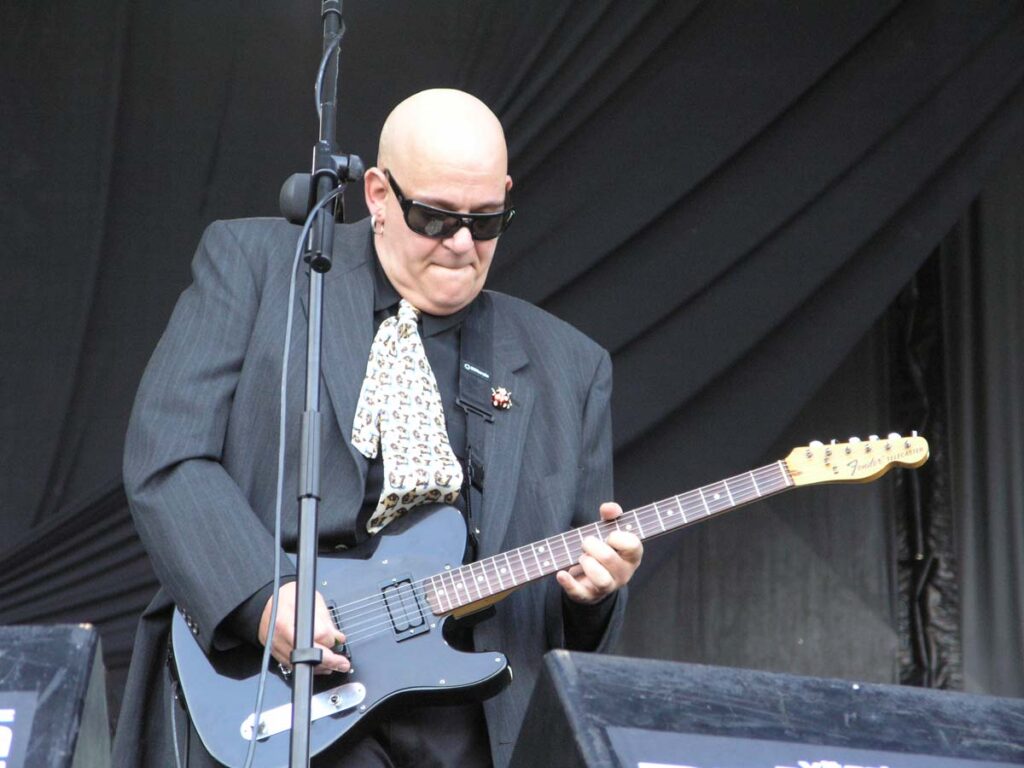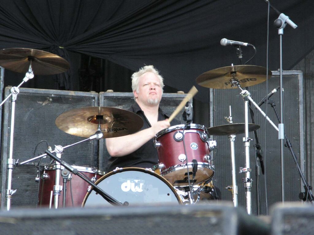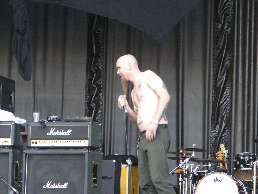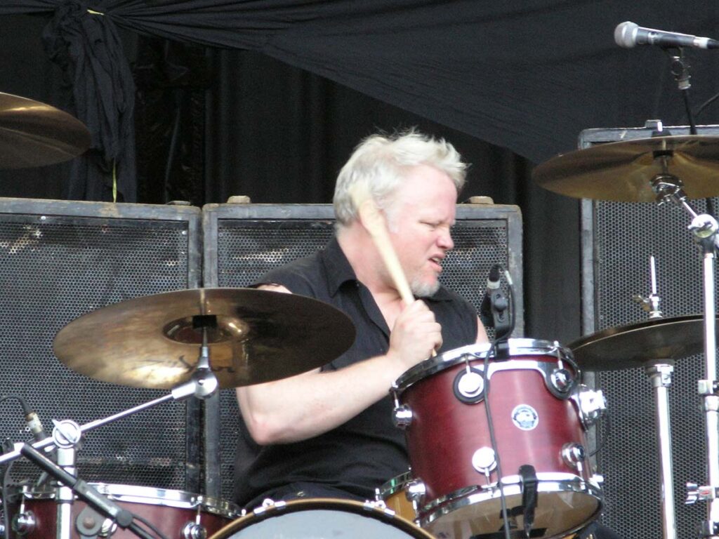 On quitte Gov’t Mule pour retrouver les sympathiques Wilco. Autre groupe culte s’il en est, Wilco est un combo pop-rock-folk ricain réputé pour ses compos efficaces et ses paroles enlevées et drôles. Mais en concert, sans connaître les-dites chansons, après un tel enchaînement de groupes remarquables, ça paraît un peu plat. Ca joue bien, on voit que les musiciens savent tenir une scène, l’ambiance est bonne, le groupe est de bonne humeur. Que de bonnes choses, mais on n’est pas au même niveau musical, tout simplement. C’est en tout cas le sentiment tout à fait subjectif qui se dégage de ce concert. Très sympathique, mais sans relief. Les mythiques punk de Social Distortion embrayent le pas, et le combo de Mike Ness n’y va pas par quatre chemins. Ce n’est pas le punk rock le plus extrême du monde, mais ça reste du punk, ça lasse, c’est rébarbatif. Au bout d’une heure, on a du mal à distinguer les chansons, et le moment est bien choisi pour aller se sustenter dans l’herbe à la belle étoile. Deep Purple prend la suite, et les vieux hard-rockers ont encore la pèche. Mais bon, je vais pas vous la faire, quand on les voit de près, ça fait quand même un peu pitié. Ian Paice est le plus marqué physiquement (même s’il joue toujours bien), Ian Gillian et Rogey Glover arrivent derrière, et même s’ils assurent (Gillian, quelle voix !!), le sentiment général reste mitigé. Le petit jeune Steve Morse tient quand même la baraque, il assure comme personne à la gratte, mais les quatre autres sont moins fringants. Bref, au bout de 3-4 morceaux, on apprécie moyennement : les morceaux sont très bien exécutés, mais on se pose inévitablement la question : à partir de quel âge un musicien est-il ridicule sur scène ? Je ne trouve pas qu’ils l’aient été, entre nous, mais il y avait quand même quelque chose d’un peu malsain Too old to rock.