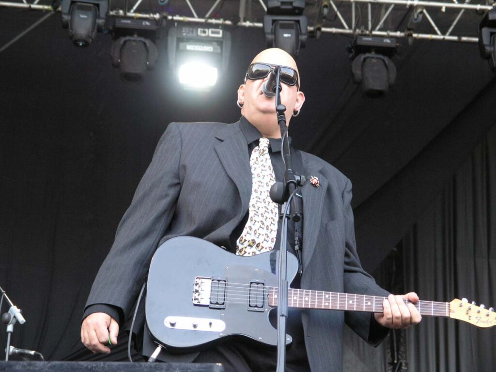 Retour sur le site du Azkena Festival deux ans après une première visite bien agréable (Hermano, voir chronique sur le site), on redécouvre un site qui n’a pas changé d’un pouce : quelques espaces vert, une grande esplanade bitumée, des bars partout, un marché avec plein de disquaires, et 2 scènes face à face, sur lesquels vont s’enchaîner les concerts pendant 2 jours (on ne comptera pas les petits concerts d’ouverture de la veille). On arrive sur place une bonne heure après l’ouverture des portes, les 2 premiers groupes ne paraissant pas vraiment très intéressants On arrive donc au moment où Rose Hill Drive s’emploie déja à réveiller les premiers festivaliers (les espagnols ne sont pas du genre pressés, et on voit encore beaucoup de monde rentrer dans l’enceinte du festival 5 à 6 heures après le début !). Ce jeune trio se révèle être la première révélation / bonne surprise du jour. Le hard-blues-heavy-70’s du trio fait mouche, et on se prend à se dandiner ou taper du pied, le sourire aux lèvres, au son de la gratte bien poisseuse du groupe. Les excellentes reprises de Sabbath (« Fairies wear boots ») et de Led Zep pour conclure (« Immigrant song ») nous confortent sur les influences du groupe, et nous donnent envie d’en découvrir plus ! On traverse alors rapidement le site pour ne pas manquer une note de Masters Of Reality qui enchaîne sur la grande scène. Et quelle performance ! Il s’agit du seul et unique concert de MOR en 2005, on n’allait pas rater ça ! C’est aussi le premier concert de Chris Goss depuis sa convalescence de début 2005 (et rassurez-vous, le bonhomme ne paraît vraiment pas diminué !). Etonnamment, donc (le quatuor ne bénéficiant pas d’une série de concerts pour se « roder »), MOR joue impeccablement : pas un pain, pas une approximation. Parce que la bande à Goss se traîne une réputation de « groupe à albums » (sans doute dû au fait que ses disques sont pleins de chansons remarquables ), on a tendance à oublier quel excellent groupe de scène c’est Ils nous le rappellent ici, évidemment dirigés de main de maître par un Goss leader né, impeccable tant au chant qu’à la guitare, mais aussi plus discrètement par John Leamy à la batterie, co-leader de longue date. Bonne performance également de Dave Catching (le monde est petit…) qui tient la deuxième guitare. Alors qu’on distingue un grand chauve observer le concert depuis le bord de la scène, Chris le fait appeler et demande au public de souhaiter la bienvenue à son pote Nick. Nick Oliveri rentre donc sur scène presque timidement, humblement en tout cas, un peu mal à l’aise, comme on l’a vu cette même année fouler les planches avec John Garcia pendant le concert de Hermano à Madrid. Ils se lancent ensemble dans un « Time to burn » impeccable et rentre-dedans à souhait. Nick se retire alors et le groupe se lance dans une interprétation remarquable de « She got me (when she got her dress on) », un vrai plaisir. S’ajoute à ça un nouveau titre, inspiré selon Goss des cérémonies de remises d’Awards musicaux quelconques, appelé « Hit shit » (orthographe approximative), excellent, basé sur un riff qui, comme pour 90% des titres de MOR, nous fait se poser la question : « mais pourquoi personne n’a pensé à composer ce riff avant ? ». Bref, un sans faute.