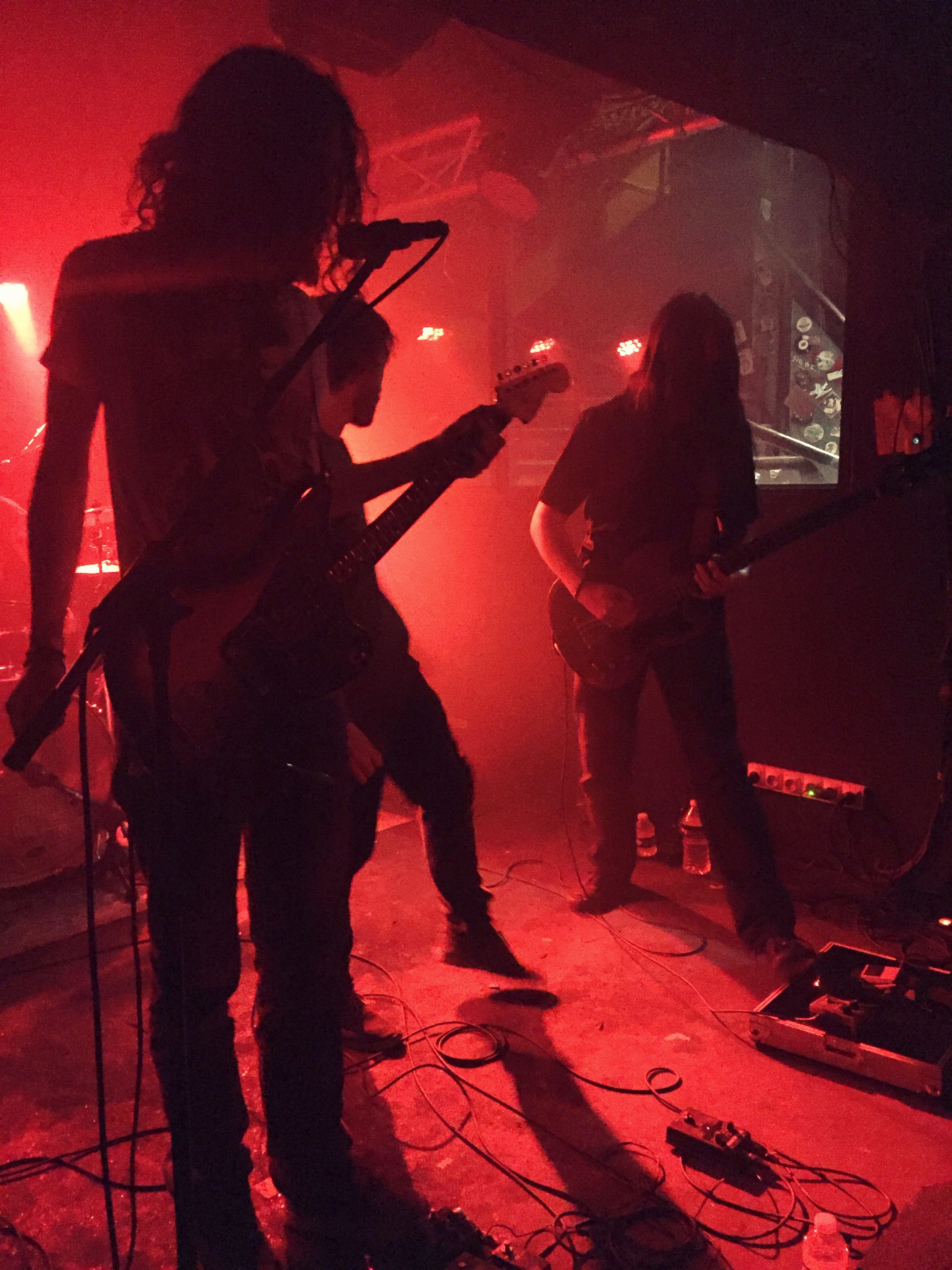 On commence la thérapie avec Ceremonia, un quatuor parisien à la musique froide et obscure. Des mélodies mélancoliques posées sur un jeu de batterie incisif et accompagnées d’une basse qu’on aurait souhaité plus lourde. L’excavation des morbides sentiments que cherche à réaliser le groupe est assurée par les cris puissants de Christian, qui entre deux riffs se rapproche de son micro et invoque nos démons enfouis. De son côté, Youri enchaine les accords interdits tous plus lugubres les uns que les autres, venant ainsi renforcer la noirceur du set. Leur atmospheric doom aux accents de black metal appelle de plus en plus de fidèles qui viennent peu à peu remplir le sous-sol. Pourtant, en dépit d’une présence scénique en adéquation avec leur énergie sombre, le groupe n’obtient que de timide hochement de tête de la part du public.