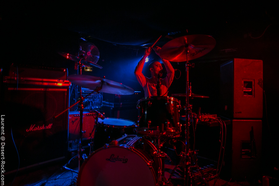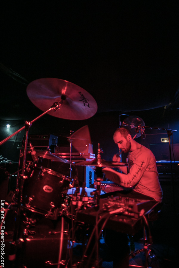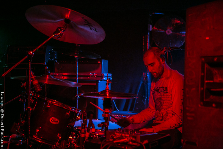 L’écoute d’une traite de Mirror Reaper (amputé sur scène de certaines parties) reste tout de même assez exigeante, et on décroche parfois du monolithe que les deux américains nous balancent en pleine tronche. A la décharge du groupe, le son (à Paris en particulier mais aussi un peu à Bordeaux) n’est pas aussi net qu’on pourrait l’espérer et l’on ne distingue pas nécessairement toutes les nuances que l’on peut entendre sur le disque. A Bordeaux en plus, la scénographie n’aide pas à l’implication ou au maintien de la tension : comme toujours au Void, le light show inexistant (un spot pleine gueule rouge de chaque côté de la scène, immobile – cf photos…) n’apporte aucune aspérité visuelle pour étayer un peu le propos musical. Décidément, on aurait aimé les voir ailleurs.