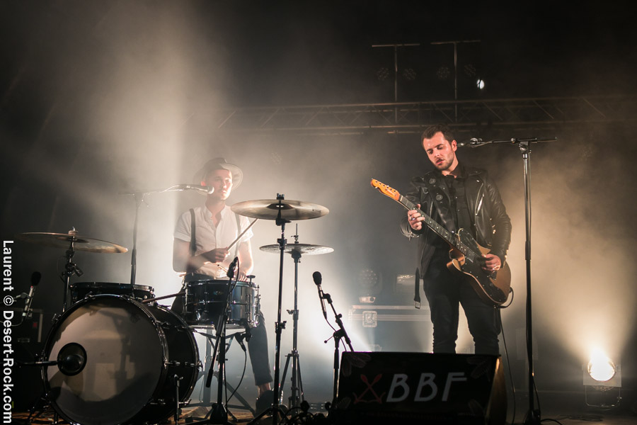 Un DJ set rock vient occuper le temps nécessaire pour installer la scène pour Blackbird Hill sur cette même scène. Le duo girondin bénéficie d’une ambiance crépusculaire très propice aux efforts déployés pour l’aspect visuel de leur performance : fumée, lights travaillés, look étudié … Le groupe a pas mal joué ces derniers mois et sa mise en place est quasi impeccable : son boogie rock plus ou moins saturé ratisse large et cartonne auprès d’un public qui est bien dans le cœur de cible. De manière purement subjective, on regrettera un peu la vision très « construite » des morceaux, ne laissant que peu de place pour une prise de liberté un peu salvatrice, une impro, un plan un peu fun… Tout ça est très carré, et très sérieux… trop ?