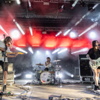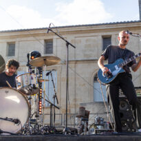 La scène 2, en vise-à-vis de la scène principale, au fond du site sous les arbres, est inaugurée aujourd’hui par un jeune trio français. A mi-chemin entre punk rock énervé et noise rock un peu plus ouvert, le groupe trouve assez vite son public, si l’on en juge par une fosse plutôt bien fournie. Le set déroule dans une agréable ambiance pré-crépusculaire, tranquille, sous les arbres… Un set sympa qui ne s’est toutefois jamais totalement emballé, et aurait gagné à un peu plus d’énergie.