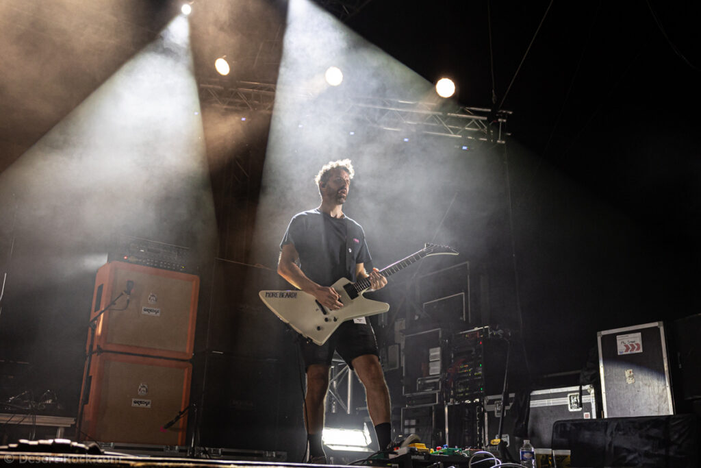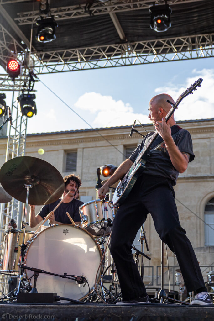 De manière ô combien symbolique, c’est au trio girondin que revient l’insigne honneur de clôturer la dernière édition du festival. Une lettre d’adieu en forme d’hommage au groupe qui a vu sa renommée exploser depuis leur premier passage au BBF en 2014… Dix ans ! La symbolique est un peu folle, le dernier concert de l’histoire du festival revenant donc à un groupe qui avait officié sur sa première édition, et qui plus est un groupe local… L’émotion est palpable en tout cas, tandis que Jimmy annonce effectivement quelques surprises sur ce set.