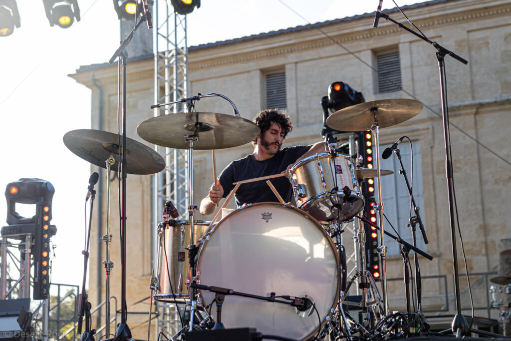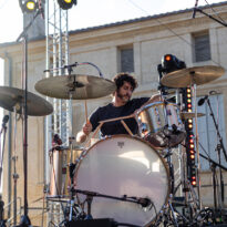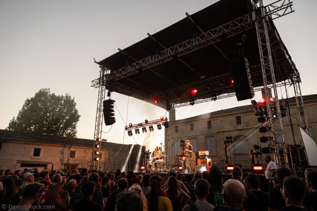 Un trajet routier quelque peu encombré nous empêche d’assister au lancement du set de Blackbird Hill. Le duo guitare/batterie vient en regional de l’étape, et deroule un set efficace de leur garage rock bluesy-grungy. Le public n’est pas encore très fourni en cette fin d’après-midi, mais les sourires sont là, et les applaudissements nourris. Les lights sont peu efficaces avec ce magnifique soleil rasant, mais la mise en son est impeccable. Le groupe annonce non sans émotion le départ de son batteur, mais l’inamovible Maxime (qui aux débuts du groupe en était le batteur) reste à la tête du bateau et le groupe devrait continuer. Une bonne heure de set bien agréable en tout cas pour lancer la soirée.