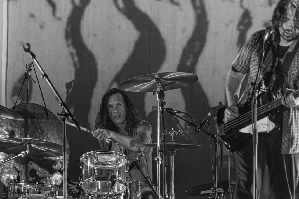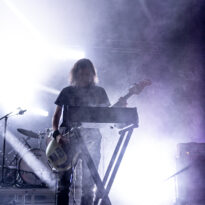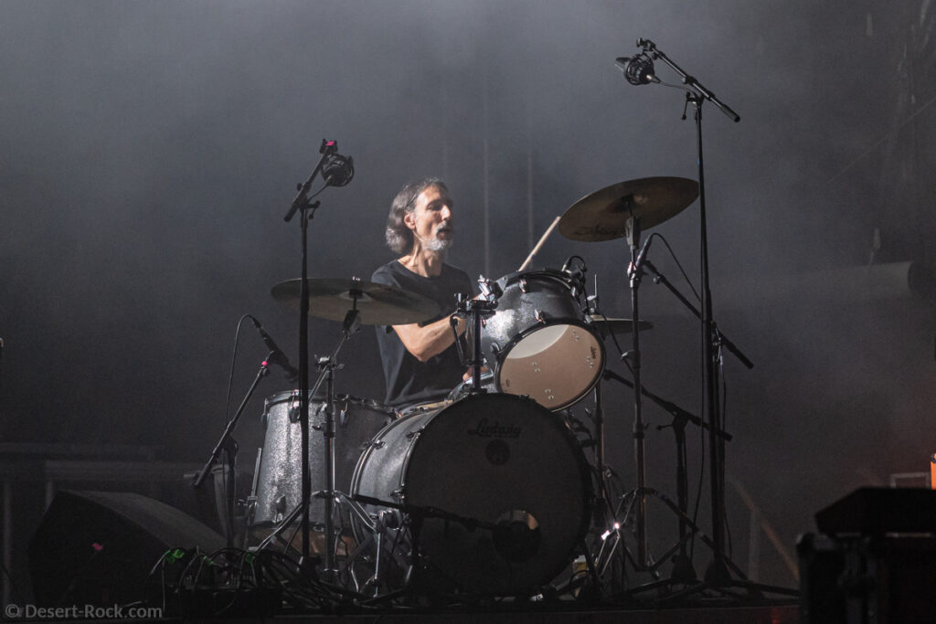 Le final ne décevra pas : en introduisant le dernier titre de la soirée, le rideau blanc / backdrop utilisé durant tout le concert tombe pour laisser découvrir une assemblée de musiciens en fond de scène : guitares, basses, batteries… Poussant les potards émotionnels sur 11, le trio lance évidemment leur plus gros standard, « Strong Reflection » (qui est aussi leur premier morceau sur leur premier album…), boosté par tous ces musiciens supplémentaires, une assemblée constituée de membres de l’organisation du festival, de proches amis du groupe, d’acteurs historiques de la carrière de MRS, de copains et collègues musiciens… Le message est fort, l’hommage est vibrant de sincérité, l’ambiance est festive et émouvante… C’est mieux qu’un feu d’artifice non ?