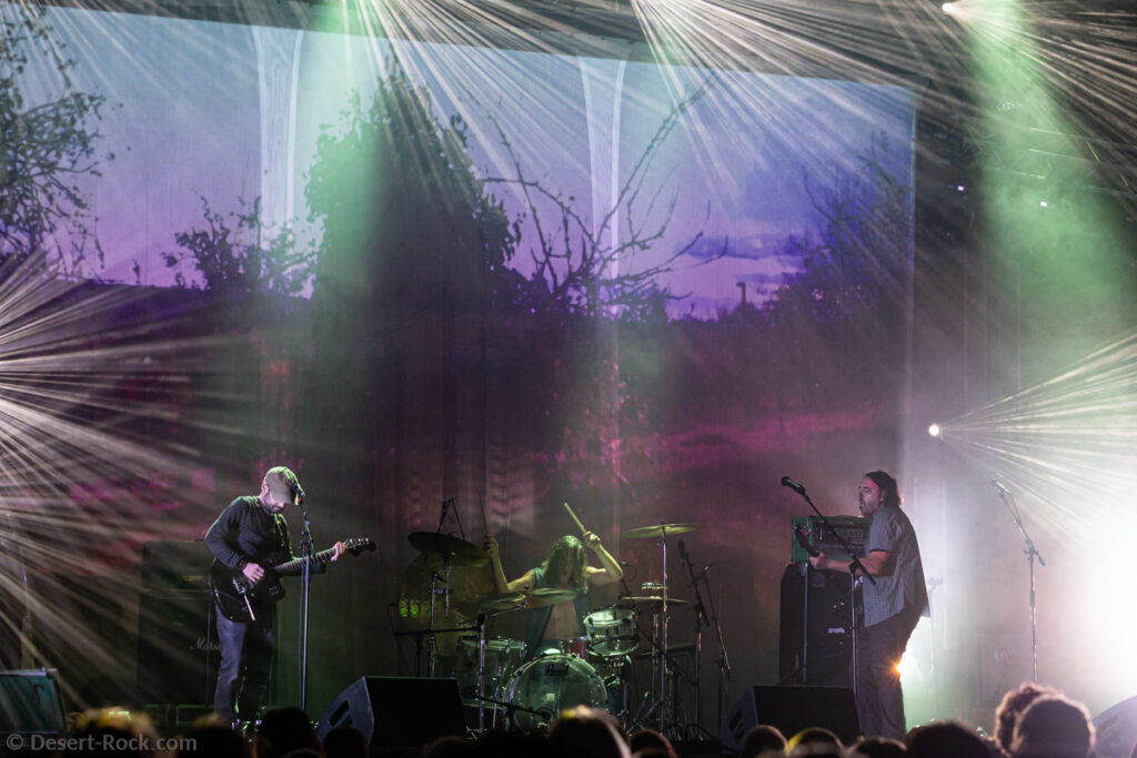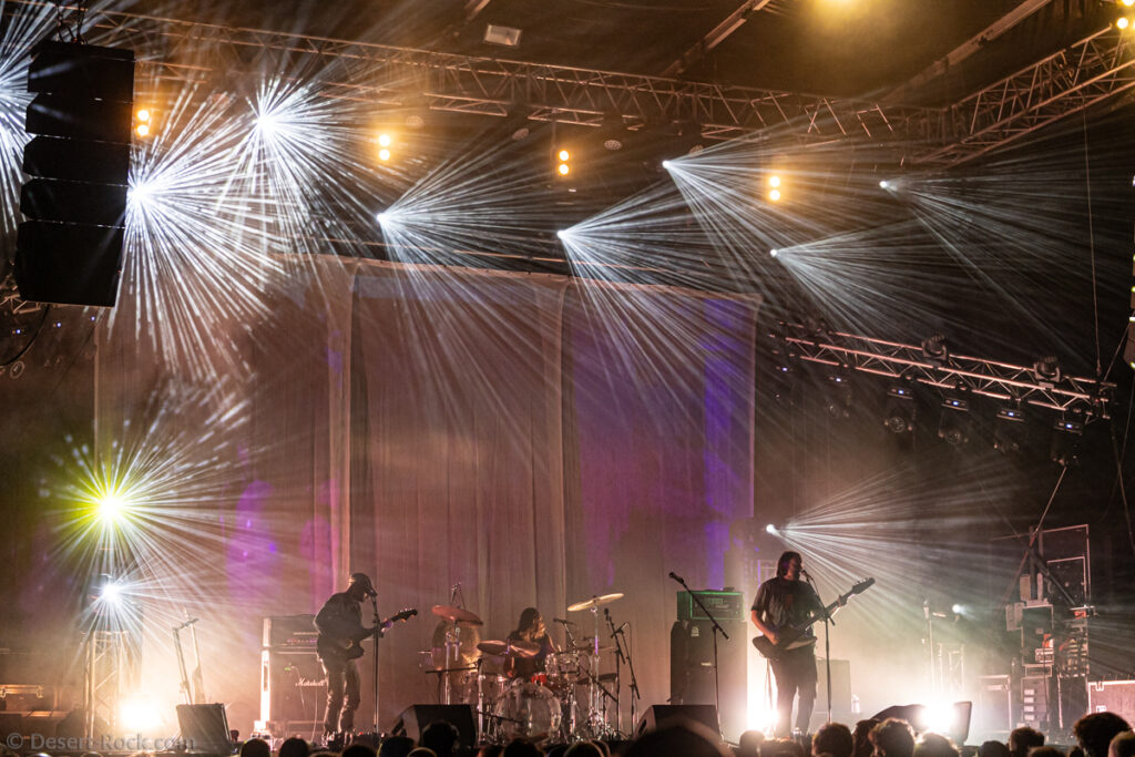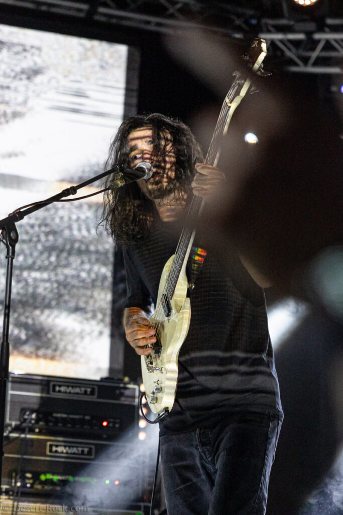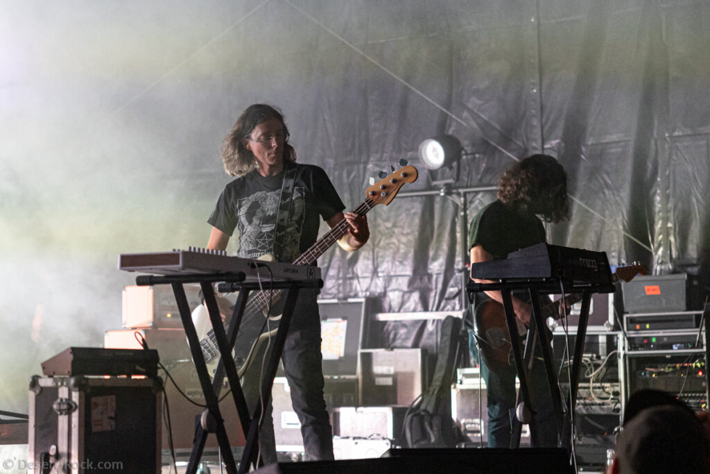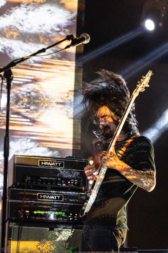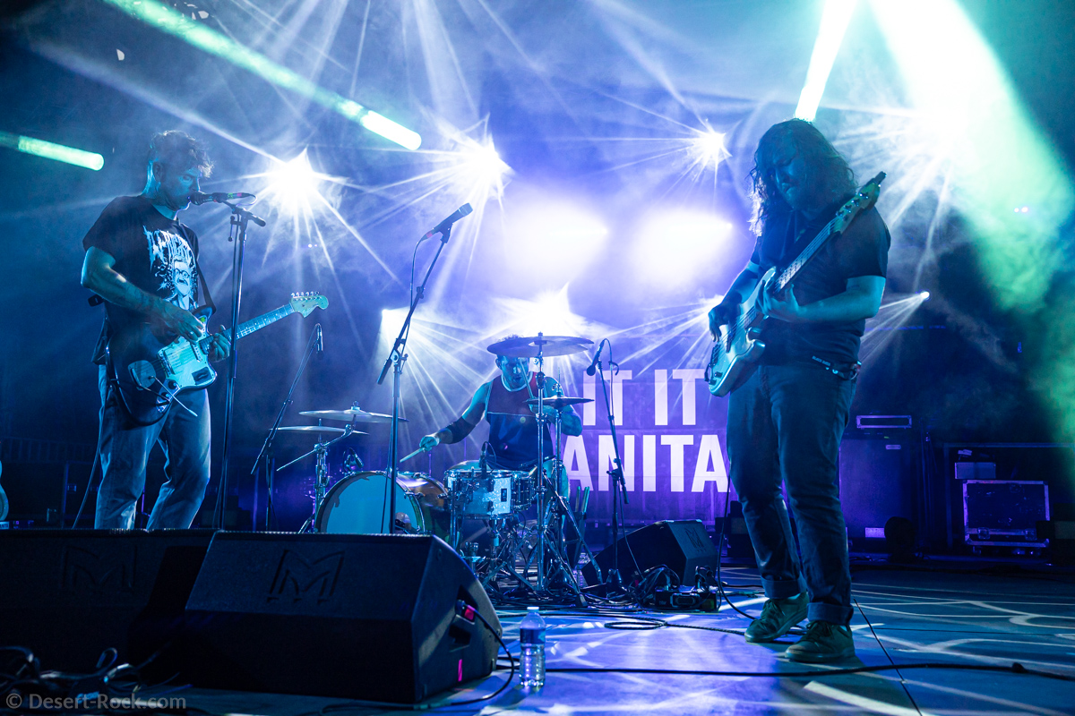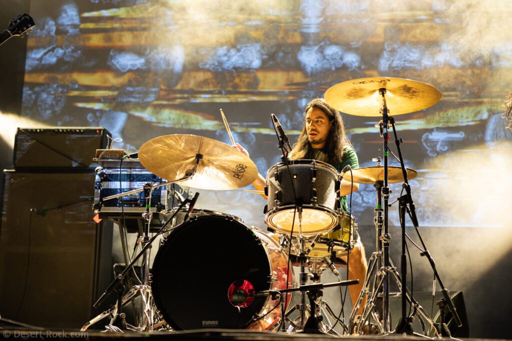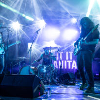 Plusieurs dizaines de spectateurs se placent déjà aux meilleures places devant la scène 1, plus d’une demi heure avant le set de 1000Mods. Une part du public se souvient peut-être du concert diabolique donné par nos hellènes lors de l’édition 2018 (rappel)… ou bien c’est simplement la réputation croissante du groupe qui se développe au-delà de la sphère stoner. Mais tout ne se sera pas forcément déroulé comme prévu dans la préparation, tous les instruments du quatuor étant restés quelque part en transit entre deux avions. Dépanné par des groupes locaux, rien ne semble déstabiliser le quatuor (qui se retrouve donc aujourd’hui équipé d’instruments disparates), qui propose avec un rugissant « Electric Carve » une entame plus que solide donnant le ton de la soirée : ce soir, 1000Mods prend l’option set list « zéro risque » avec rien moins qu’un best of de leur carrière, ratissant dans tous leurs disques pour y piocher ce qui se fait de plus efficace. Ils iront même déterrer rien moins que quatre morceaux de leur premier album de 2011 ! Les riffs groovy défilent non-stop pendant une heure, auxquels répondent des salves de slammers quasi in-interrompues.