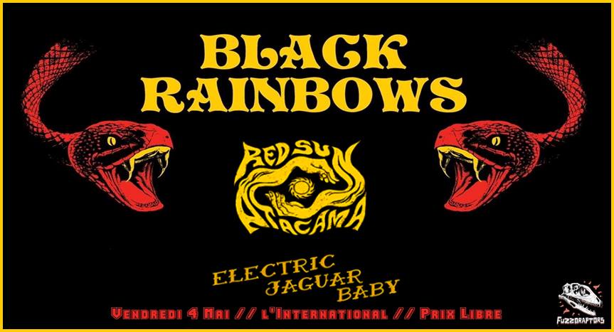 Alors que le Desertfest de Berlin démarre tout juste, il se passe encore des choses à Paris, en particulier dans la cave de l’International où l’association Fuzzoraptors à programmé à prix libre (Ce qui est assez rare que pour être souligné) Black Rainbows avec en première partie Electric Jaguar Baby et Red Sun Atacama