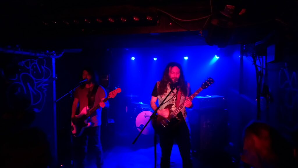Le set de Electric Jaguar Baby débute sur les écrans de la salle du bar et sonne la descente vers la cave pour voir de quoi il retourne. Ce Duo Parisien au look de hypster propret met dès lors son énergie au service du plateau pour chauffer les planches de la scène à grand renfort de Guitare et de batterie. Ils offrent souvent des tentatives Stoner aboutissant souvent à un rock convenu mais pas sans énergie. . En habitué de la scène le chanteur cherche le contact avec le public, l’encourageant à se donner bien qu’il soit encore un peu tôt. Pour autant le set semble avoir séduit un bon nombre de personnes dans l’assemblée et c’est là le principal.