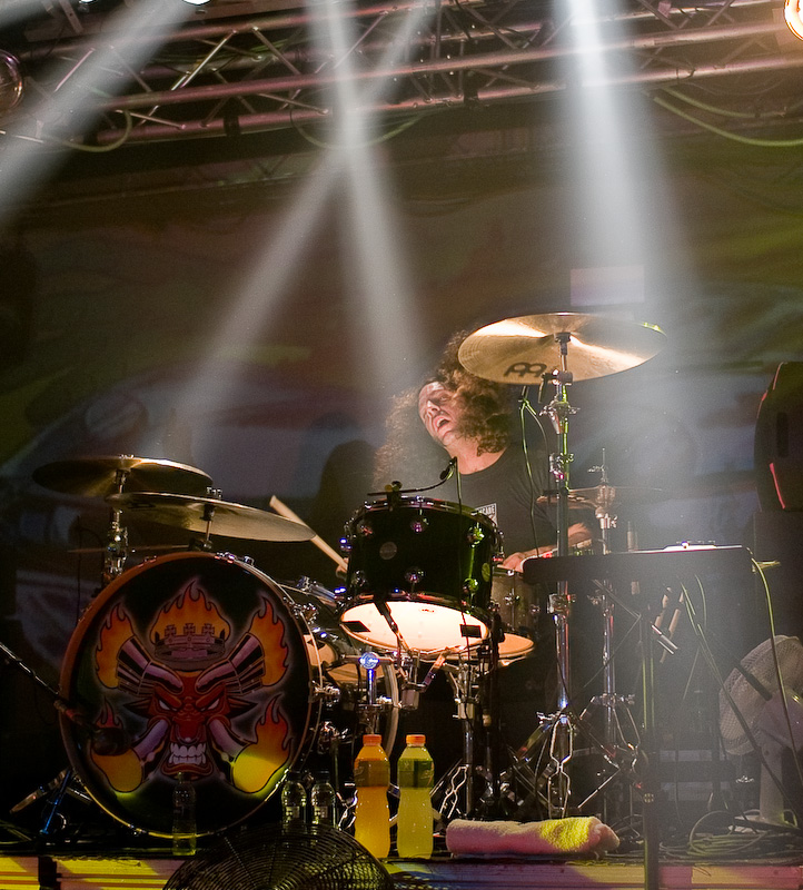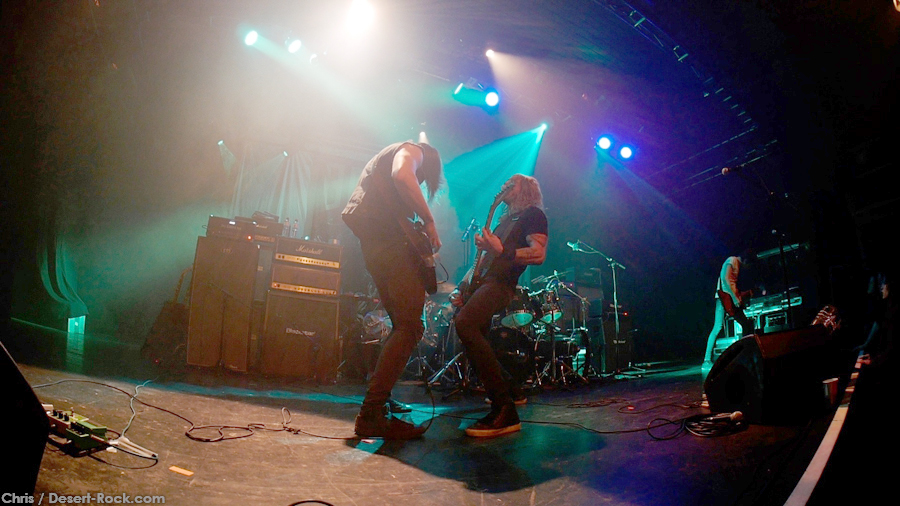 Après cet épisode drogué, nous remontons le temps pour « Twin Earth » de la prod précédente. « I Live Behind The Clouds », « Last Patrol » et « The Duke of Supernature », jouées à la suite explorent la discographie très récente des Etasuniens avant un retour en terres plus anciennes avec « Spine of God » de lui-même. On retape dans la dernière production en date avec deux titres : « End Of Time » et « Stay Tuned » puis c’est le moment de procéder à un petit break devenu le standard dans tous les concerts qui se respectent.