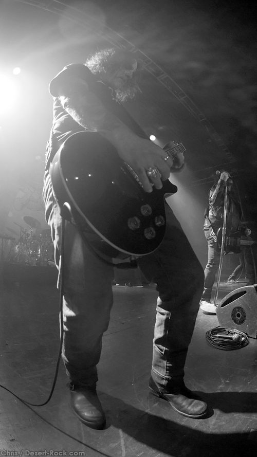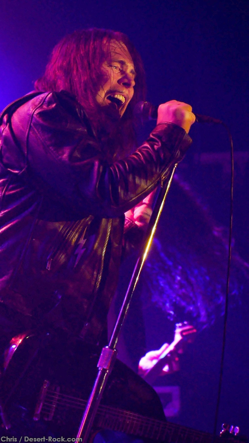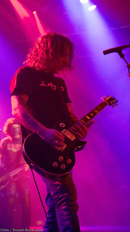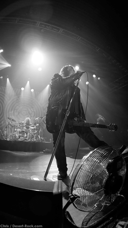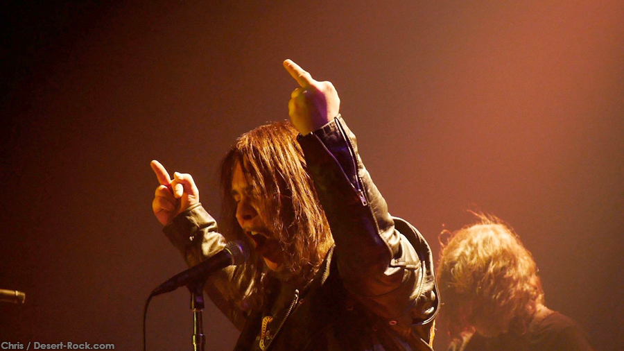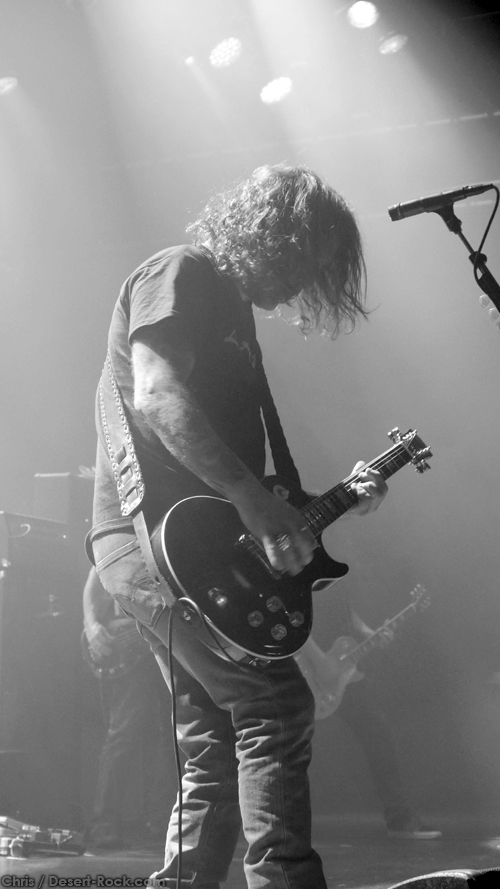 Bref, après quelques débats au sujet des shows à venir dans la région, et il y en a, tout le monde se retrouve à l’intérieur pour le show tant attendu. Et il n’y aura pas longtemps à attendre : les zicos sont en place et ça envoie direct dans le bon gros rock’n’roll. L’arrivée de Dave Wyndorf provoque une onde de choque dans la salle. Certains trouveront à redire au sujet de la setlist ; personnellement, j’ai trouvé que c’était plutôt du tout bon qui nous a été proposé lors de cette soirée. « The Right Stuff » de « Monolithic Baby! » – que j’apprécie plutôt beaucoup – ouvre la danse suivie de l’imparable « Dopes To Infinity » extraite de l’album que vous savez qui sera suivie de « Look To Your Orb For The Warning » du même tonneau licencieux.