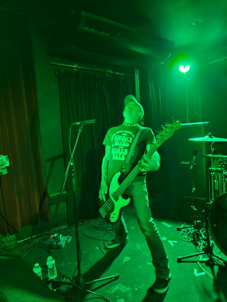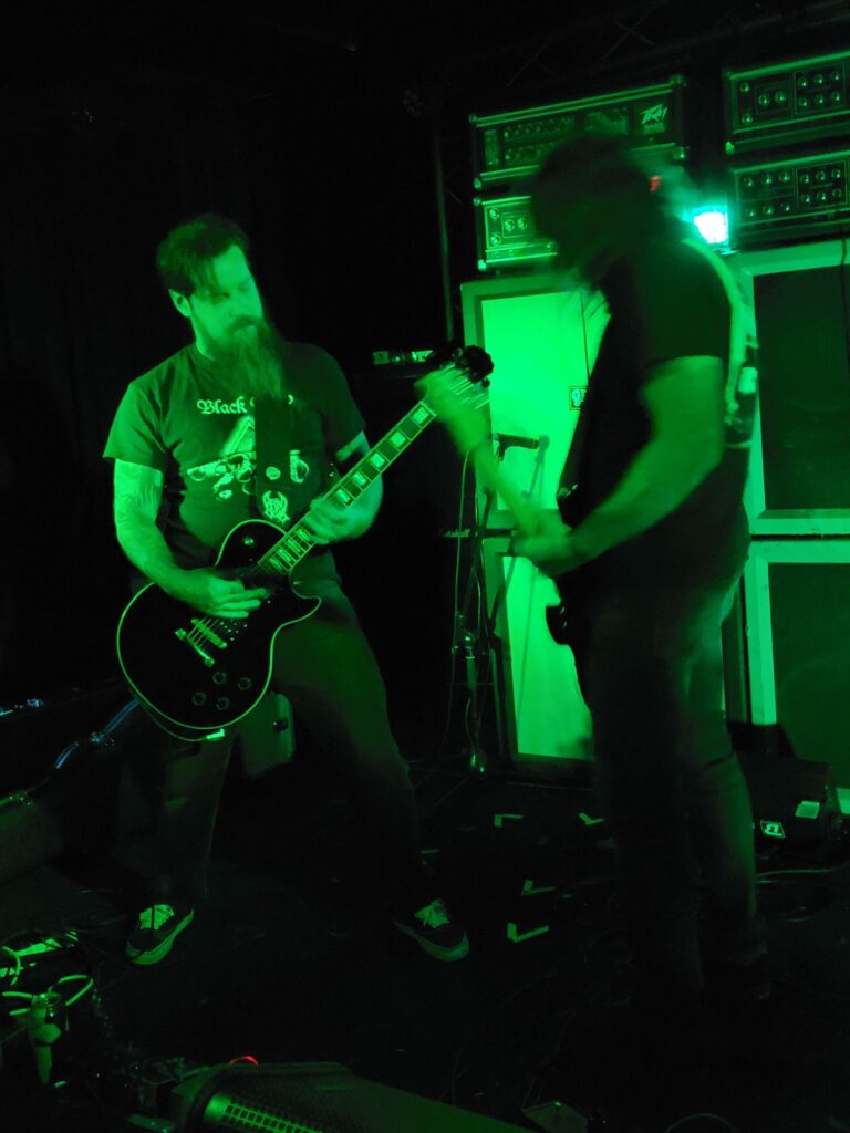 Nous sommes un jour après le 420 mais Bongzilla ne semble pas être du genre à faire cas des dates anniversaires, le trio s’installe et Mike “Muleboy”, qui tient la basse pour la formation après avoir été guitariste à ses débuts, partagent un pipeau à fumée avec Mike “Magma” le batteur. Attendez…mais ce n’est pas…un pipeau…que fait la police? Visiblement elle est restée loin et ce sera très bien ainsi pour que nous puissions profiter des trois américains qui œuvre au milieu d’une scène nue dans une atmosphère de squat en cours de déménagement.