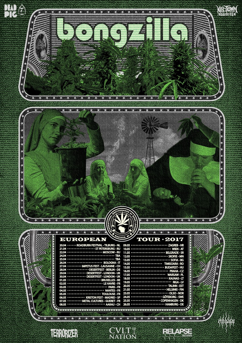 Les rednecks enfumés de Bongzilla ont entamé leur entreprise de destruction (lente) massive du vieux continent le week-end dernier au Roadburn, ils vont ensuite se chauffer un peu et monter en régime sur quelques dates anecdotiques (genre les Desertfest ce week-end…) avant de venir étaler leur pleine puissance dans quelques belles salles de francophonie :