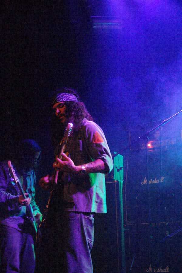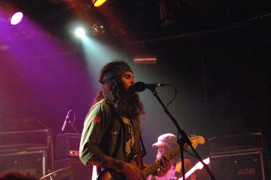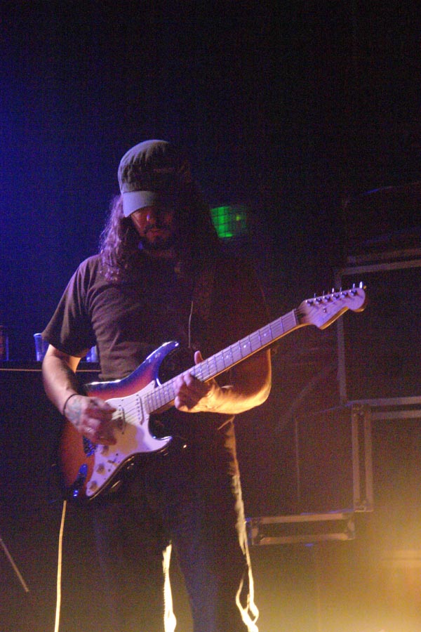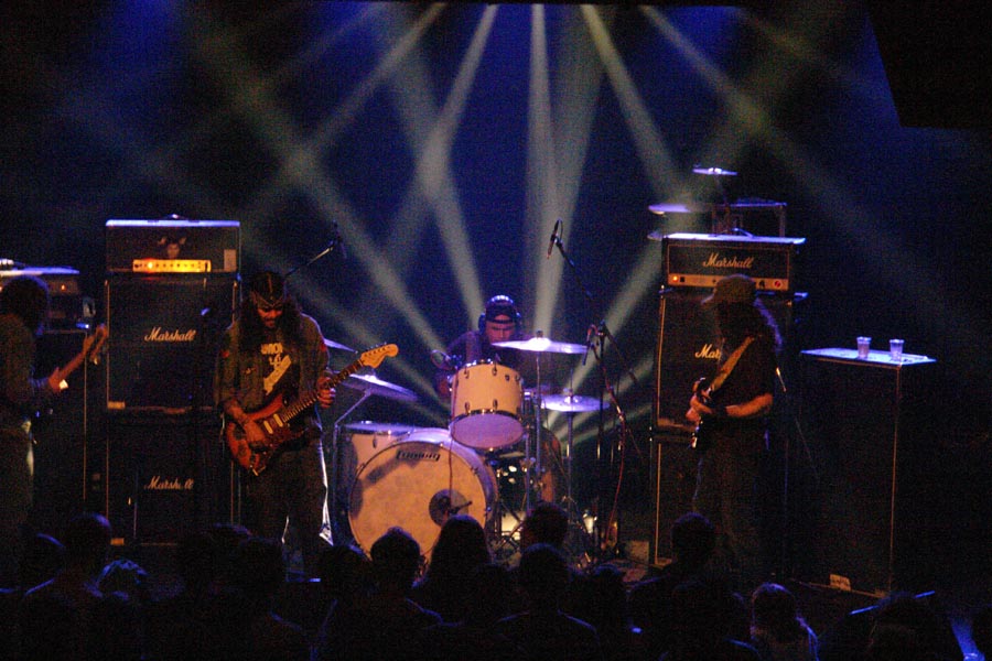 C’est au moment où je vis le bassiste se recaler face à un de ses ampegs et où les premières mesures étaient distillées que je me suis rappelé leur venue précédente et l’ennui qui m’avait gagné à plusieurs reprises durant le set. J’ai immédiatement chassé de ma mémoire ces désagréables souvenirs et me suis concentré sur le son délivré par ces étasuniens. Très en place, ils nous ont gratifié d’un concert plus que correct au niveau timing, mais qui prit du temps à prendre son envol. Un peu chiants au bout de la première demi-heure et pas vraiment interactifs avec le public ni même démonstratifs, ils m’ont à nouveau donné cette impression désagréable de jammer pour eux et rien que pour eux. Le setlist ratissa très largement en extrayant le meilleur de ‘Somera Sol’, dont je suis assez fan, comme ‘Shrine Communications’, Love Is Revolution’, qui est mon préféré sur leur dernière livraison et ‘Oblivion’. Car si je ne suis pas vraiment convaincu par l’exercice scénique de cette formation, je lui reconnais bien plus qu’un talent certain pour ce qui est de nous pondre d’excellentes compositions psychédéliques gorgées du soleil californien avec une bonne grosse dose d’influences seventies et, à mon sens, le dernier effort est ce que l’ex-Kyuss nous a pondu de mieux depuis ‘Jalamanta’. Pour ce qui est de son prédécesseur, ‘Get Into It’ et son riff imparable, demeure un des tout grands moments de ce concert très homogène.