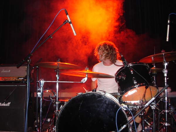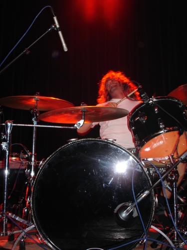 Après cette tuerie, je me réjouis à l’idée que le concert de Brant Bjork sera plus reposant pour les oreilles et la nuque. Il est presque minuit quand Brant Bjork & The Bros. commencent à installer leur matériel. Alors que pour les groupes précédents, le batteur se trouvait sur une estrade, Mike Peffer préfère monter sa batterie sur la scène elle-même de façon à être plus proche des autres musiciens. Même dans une salle énorme, ils parviennent à nous faire croire qu’on est dans un club en occupant seulement la moitié de la scène.