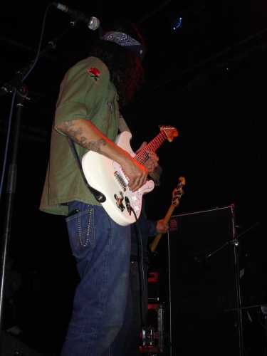 Bien que je ne sois pas un grand fan du Punk/Hard Core fuzzy de Winnebago Deal, force est de constater que ces mecs sont de furieuses bêtes de scène. Le genre de groupe à voir plutôt qu’à écouter peinard dans son salon. Après un rapide détour par le bar, on se retrouve à nouveau devant la scène pour Vic du Monte’s Idiot Prayer. Petite déception, leurs costards sont moins classe que sur les photos. Par contre, c’est Alfredo Hernandez qu’on retrouve derrière les fûts. Visiblement, ils n’ont pas eu le temps de lui trouver un costume à sa taille et il fait un peu tache avec son éternel short et sa casquette retournée.