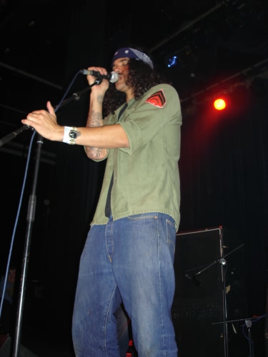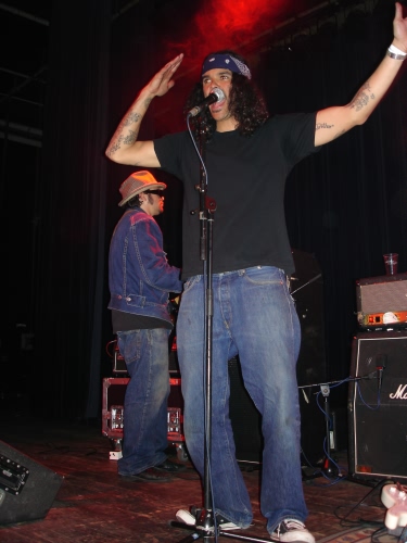 Brant profite des circonstances pour associer le geste à la parole en mimant quasiment les paroles des chansons. On a d’ailleurs l’impression qu’il raconte une histoire plus qu’il ne chante, sa gestuelle évoquant parfois du breakdance au ralenti agrémenté de mimiques irrésistibles. Il profite des passages instrumentaux pour attraper les bières et les joints qui lui sont tendus de toute part sans que cela ne semble réellement l’affecté.