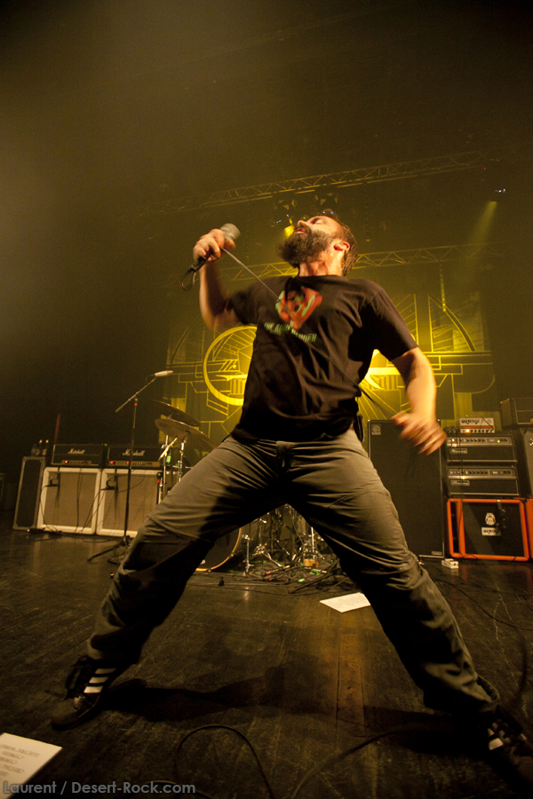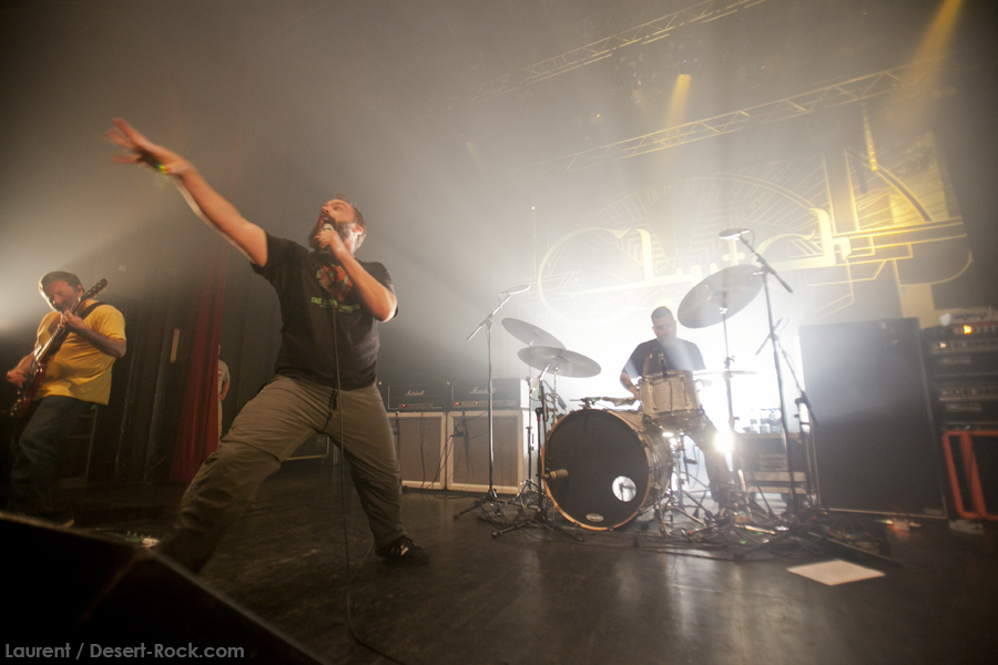 Deux jours après une date épique en format « petit festival », la perspective de revoir Clutch cette fois en tête d’affiche sur sa tournée était séduisante. Et tant pis pour les quelques centaines de kilomètres supplémentaires consentis, rien n’arrête le rock’n’roll !! Arrivés au Krakatoa (une salle de l’agglomération de Bordeaux très sympa et de capacité conséquente – 1200 personnes au garrot), le taux de remplissage est pour le moins honorable (on dira plus de ¾ de la salle pleine), pour un groupe qui est en train de se créer une notoriété encore difficile à mesurer dans le pays. La soirée s’annonce sous les meilleurs auspices !