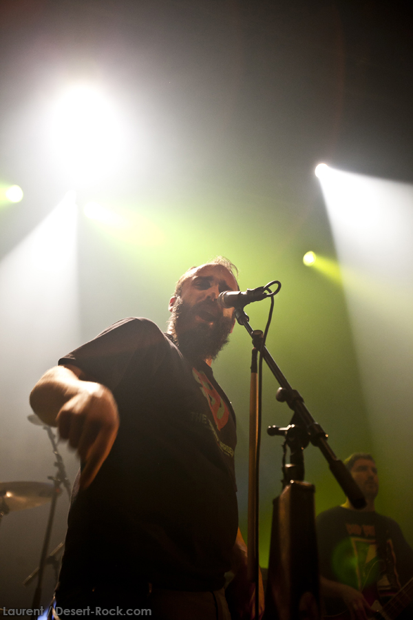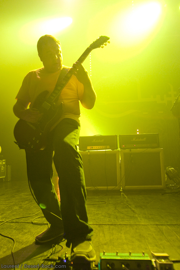 La set list continue à dérouler dans ce soucis de variété constant : on a droit par exemple au classique « Big News (I) », « Promoter (…) », puis le superbe « Gone cold » en version acoustique ce soir aussi, toujours impeccable. La fin de set est une montée en puissance que l’on croit irrémédiable, avec « Crucial velocity », donc, « Cyborg Bette » et… « Cypress grove » ! Encore un extrait du superbe Blast Tyrant, le cinquième de ce soir ! Une vraie preuve d’amour pour cet album au groove imparable. La conclusion de ce soir, tout aussi imparable, sera constituée du désormais inébranlable « Electric Worry », associé ce soir en rappel à « The wolf man… ». Oui, un seul rappel ! Mais bon, après quinze titres de cette trempe, on n’est vraiment pas d’humeur à se plaindre, on a pris une jolie gifle, et on reprend la route avec le sourire aux lèvres !