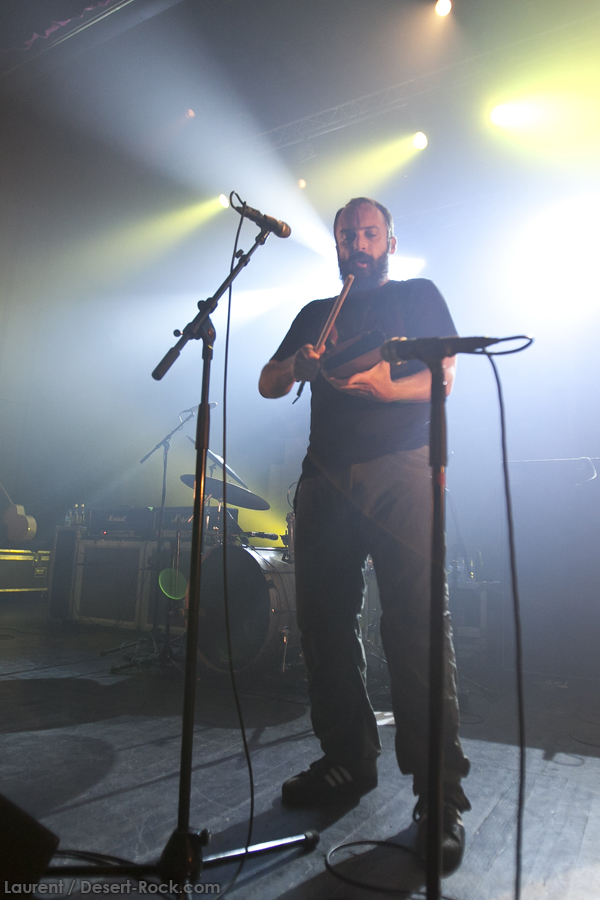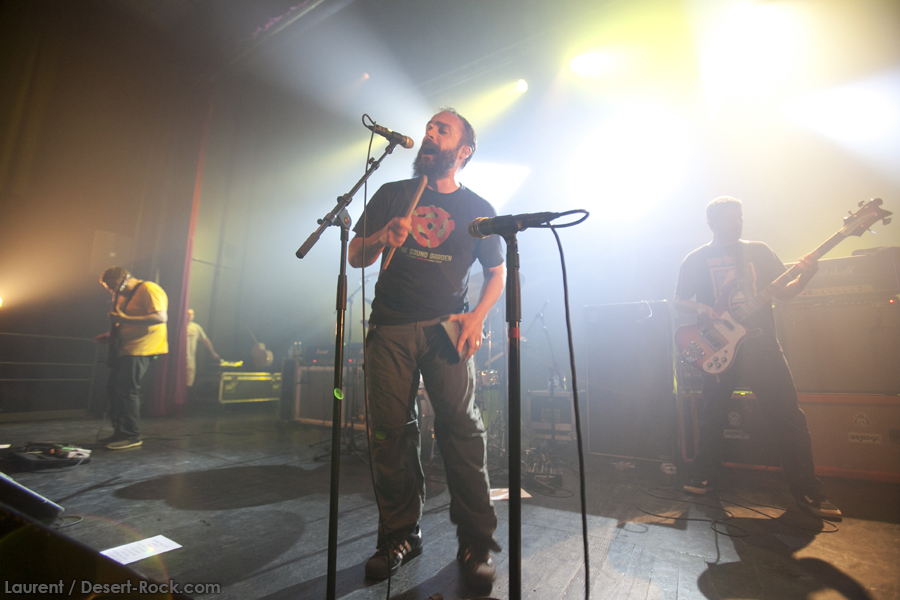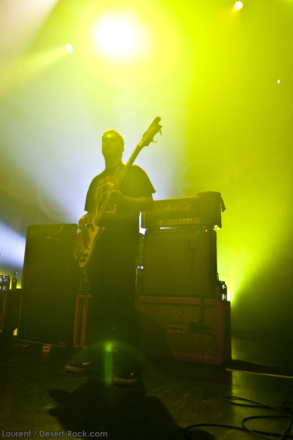 La première partie est assurée par les inconnus Mexican Morrissey. Le duo français, implanté à quelques encablures du lieu de concert de ce soir, éveille pour le moins la curiosité : un duo guitare (+ chant) et batterie, ça détonne. Les rythmiques saccadées défilent, et on a du mal à rattacher le groupe à une tendance musicale claire : post-rock par moments, on entend des influences punk ou hardcore ici ou là, avec des reflets pop, hard rock, etc… Sympa au début, mais honnêtement très répétitif passé le quatrième titre… Même si le duo est carré et joue bien (il nous informera que c’est seulement son troisième concert), quand on connaît la panoplie musicale infinie de la tête d’affiche de ce soir, on a un peu de mal à accrocher. Mais le combo est prometteur, et on se doit de féliciter l’organisateur de permettre ainsi à des groupes locaux de faire connaître leur musique au plus grand nombre.