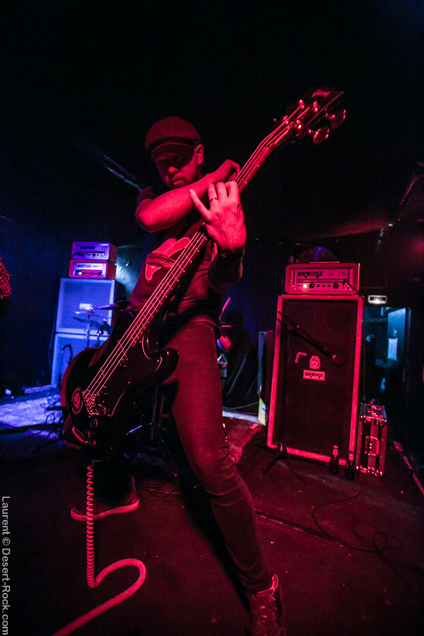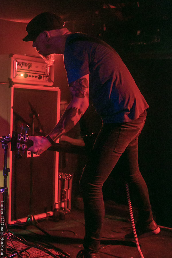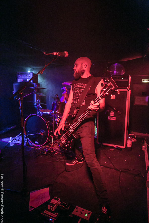 Pas un vrai cadeau pour Conan que ce slot de tête d’affiche. Le trio anglais ne l’a pourtant pas volé, ni par sa carrière, ni par son talent. Pourtant depuis quelques années le solide combo se fait un peu tailler les croupières par la jeune garde doom, emmenée elle-même par des combos comme… Monolord ! Pourtant le groupe de Jon Davis ne se préoccupe pas de ces considérations au moment de fouler la scène sur le solide « Crown of Talons ». Le patibulaire et bonhomme guitariste se cale en bord de scène et lâche ses gros riffs, un à un, avec l’assurance du gars qui n’est pas dupe sur l’efficacité d’une bonne compo doom. Le public de son côté sait en reconnaître une quand il en entend une, soit dit en passant, et les nuques commencent à battre en cadence jusqu’au fond de la salle. Une cadence bien plus lente et pesante que pour Monolord : on est dans un doom plus classique ici, Conan n’amène jamais très haut le compteur des BPM. De temps en temps, Davis se rapproche du pied de micro pour venir hurler quelques vocaux sanguinaires bien sentis, bien aidé en cela par un Chris Fielding qui apporte un contrepoint beuglé plutôt sympa en terme de nettoyage auriculaire. Le gars est furieux derrière sa basse. Le nouveau batteur (encore un…) assure, c’est carré, pas de soucis. Le set se termine sur un « Total Conquest » qui ne laissera planer aucune ambigüité sur la qualité du concert de ce soir : bien moins dynamique et énergique que Monolord, Conan a fait ce qu’il sait bien faire : déclencher un déluge de riffs pachydermiques dévastateurs sur un public qui les digère un à un, mais s’alourdit un peu plus à chaque nouvelle cartouche, pour finir quand même bien amoché. Une autre vision du doom, et c’est bien ce qui rendait ce plateau et cette tournée particulièrement intéressants. Le doom n’est pas mort !