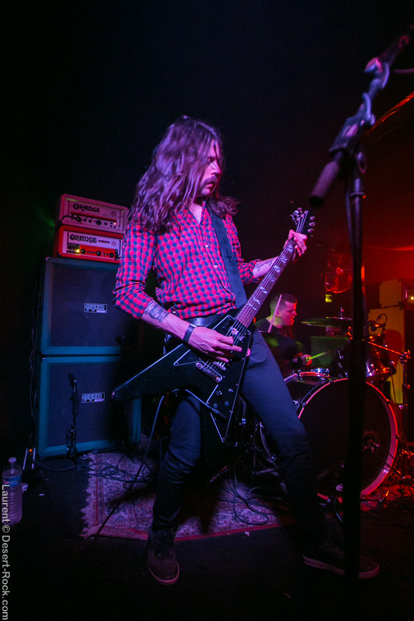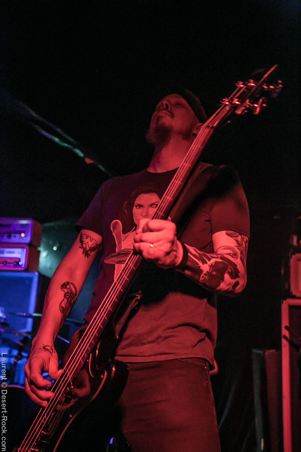 Très attendu, Monolord prend la scène juste après, clairement prêts à en découdre. Niveau énergie, Monolord c’est un peu ce qui se fait de mieux au niveau du doom, pile poil entre la nonchalance emblématique du genre et l’exubérance absolue : ni trop, ni trop peu. Mika Häkki est comme à son habitude déchaîné, maltraitant sa basse pour en tirer des riffs (oui oui, des riffs de basse… on en est là !) lourds et gras, et des rythmiques nerveuses, soutenu en cela par un Esben Willems qui, l’air de rien, caché derrière son kit, frappe comme une mule sans jamais flêchir. Thomas Jäger n’est pas en reste, moins exubérant scéniquement, il débite les bûches à l’envie, et enrobe le tout de vocaux qui, s’ils n’ont jamais impressionné quiconque par leur originalité ni leur génie, font encore ce soir impeccablement le job. Les titres du dernier album, comme « Rust » et « Where Death meets the Sea » en intro, passent bien l’épreuve du live (on n’était pas trop inquiet…), malgré certains arrangements perfectibles ici ou là. Comme toujours, la conclusion sur « Empress Rising » emporte tous les suffrages, d’une manière devenue un peu irrationnelle, mais on ne s’en plaindra pas, les zicos se déchaînant sur la fin du set. Très belle claque, et le public est incandescent.