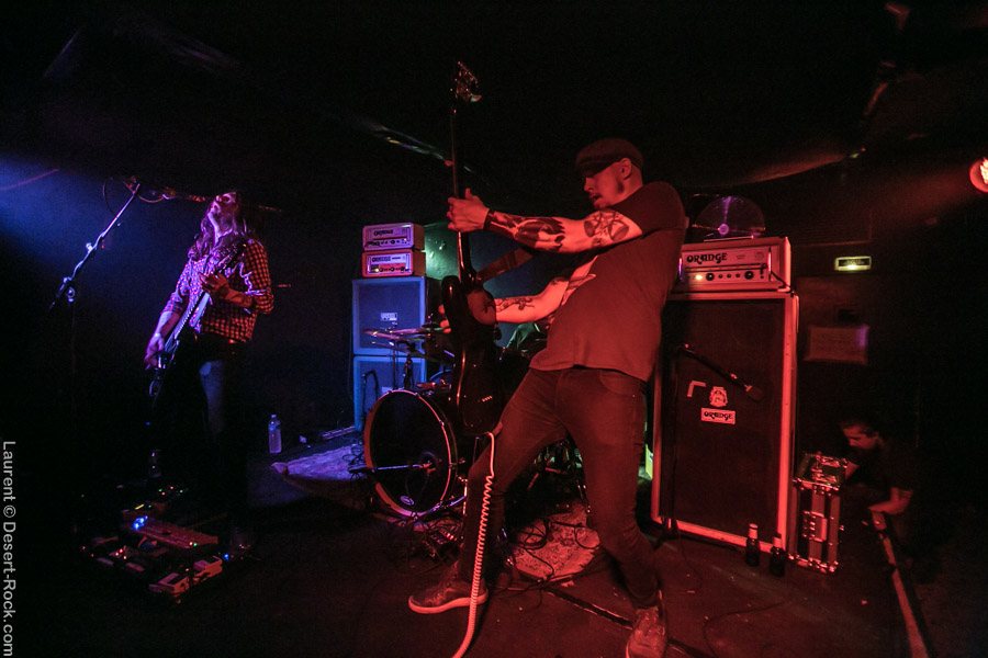 Un public pas encore au complet lorsque le duo australo-allemand de Powder for Pigeons prend la scène, grâce à une excellente opportunité de tournées concomitantes, permettant au duo de se produire en introduction de cette tournée des deux géants du doom. On pouvait craindre en revanche que le jeune groupe se retrouve un peu « léger » face à ces poids lourds, dans tous les sens du terme. Dès les premiers accords, il apparaît évident que le groupe compense par son énergie son déficit de lourdeur musicale : ne travestissant pas leur musique, ils se donnent à 100% et finalement proposent une introduction rafraîchissante et bienvenue. Il faut dire que sur scène c’est carré, ça joue, et ça envoie ! Guitares velues et fuzzées de Rhys, batterie punchy et parfaitement en place de Meike : le duo fonctionne parfaitement et le set laissera un très bon souvenir.