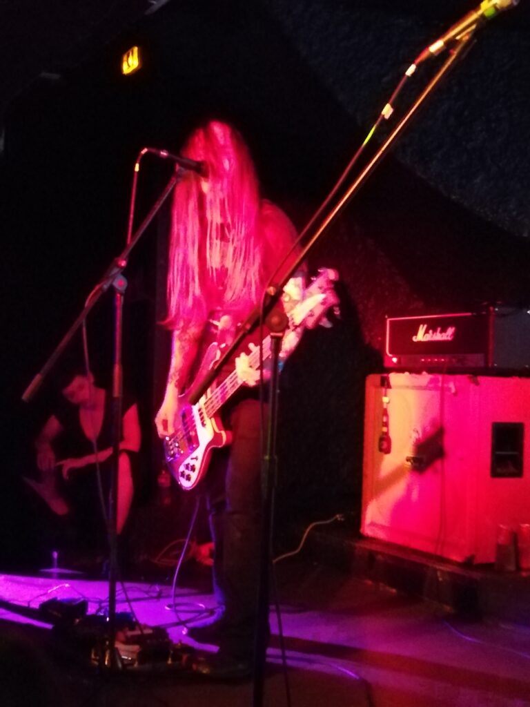 Une odeur d’encens s’est répandue dans la salle ; on subodore en toute logique les toulousains de Witchthroat Serpent, puisque, rappelons-le, leur dernier album intitulé Sang Dragon sorti en 2016 faisait référence à un encens psychotrope. Les spectateurs seront-ils bientôt les victimes de visions hallucinogènes sous ces effluves résineuses? En tout cas, ils sont plus nombreux et la scène se fait de moins en moins accessible. Witchthroat Serpent balance un stoner doom mystique des plus efficaces mais qui n’a rien d’étonnant. En live comme sur disque, Witchthroat Serpent fait penser à Electric Wizard, du son des grattes aux riffs fumeux en passant par un bon usage de la wah wah pour un zeste de psychédélisme. Toujours est-il que le set des toulousains passe agréablement bien, offrant finalement une bouffée d’air frais entre les vapeurs toxiques des précédents groupes et de celui qui va suivre. La marijane a meilleure odeur que la mort.