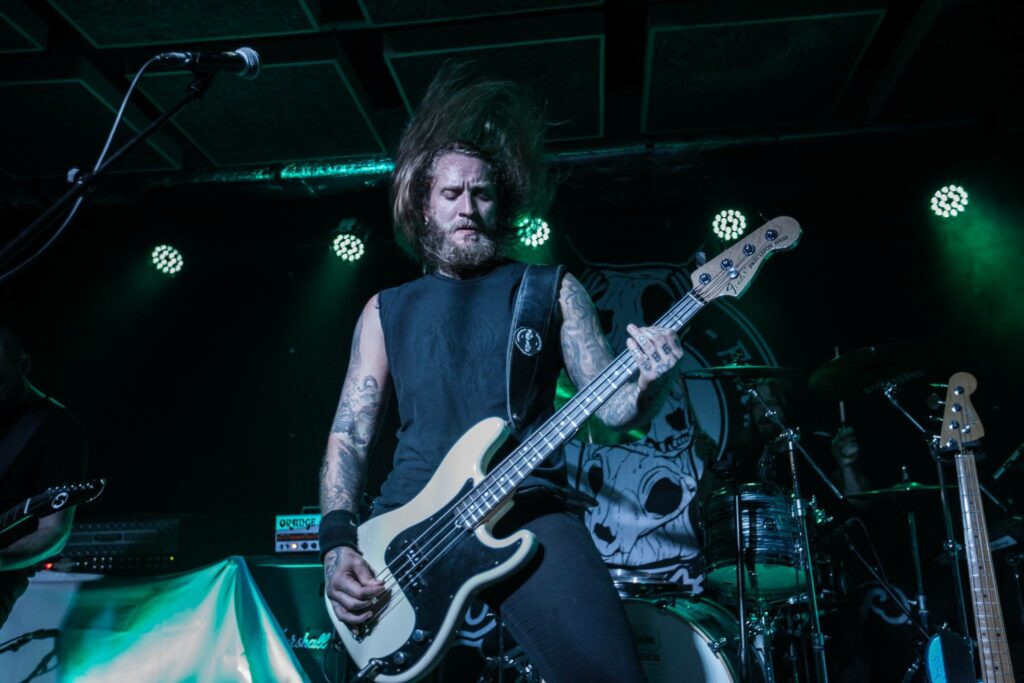 Des trois trios chargés de clôturer les trois soirs du festival, Dopethrone est définitivement le plus crust. Le trio quebequois prévient dès le début de l’escarmouche : « on va faire la fête ce soir. Pour demain prévoyez un jour de congé ». Et le moins que l’on puisse dire c’est que les promesses sont tenues. Ça riffe dru, ça donne du Tabarnak comme d’autre donnent des baffes et si la justesse est souvent sur le fil, la pesanteur reprend toujours le dessus. Et que dire de la seconde partie de set, où Dopethrone se la joue quatuor avec l’addition de Julie, proche du groupe que les habitués connaissent déjà bien. Ses vocaux de l’enfer viennent rajouter du gras à moudre au moulin québécois avec, comme toujours, en point d’orgue « Scum Fuck Blues », qui, si la déchéance était un pays, en serait l’hymne national.