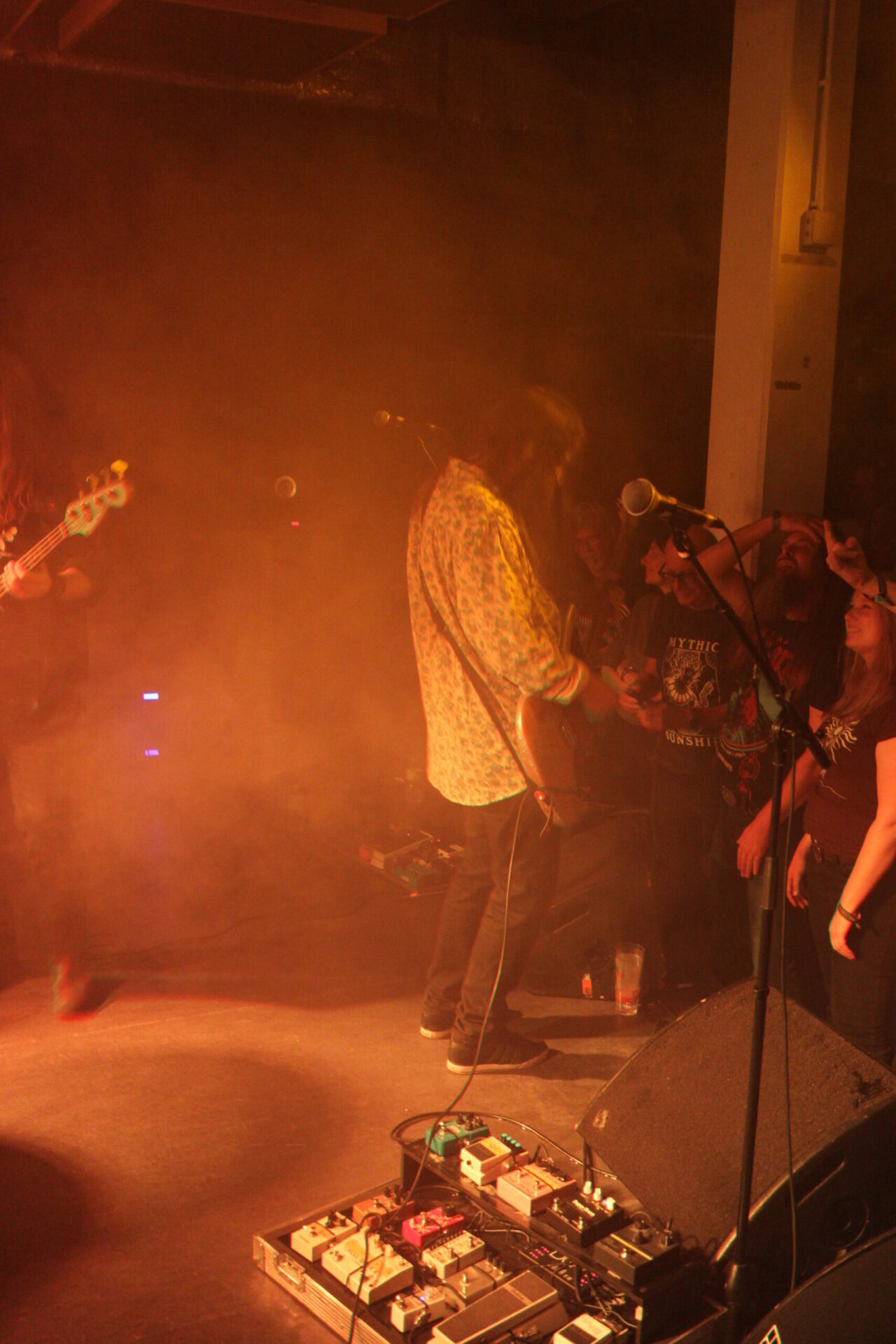 On commence doucement en allant jeter une oreille sur Astodan (Belgique). Après avoir sorti deux LP instrumentaux, le groupe a intégré le chant sur son dernier album. Comme la veille, la Canyon est déjà bien remplie et le public très attentif est captivé par la performance du groupe. Ça sonne très bien et celles et ceux qui sont arrivés plus tôt que moi ont eu raison.
