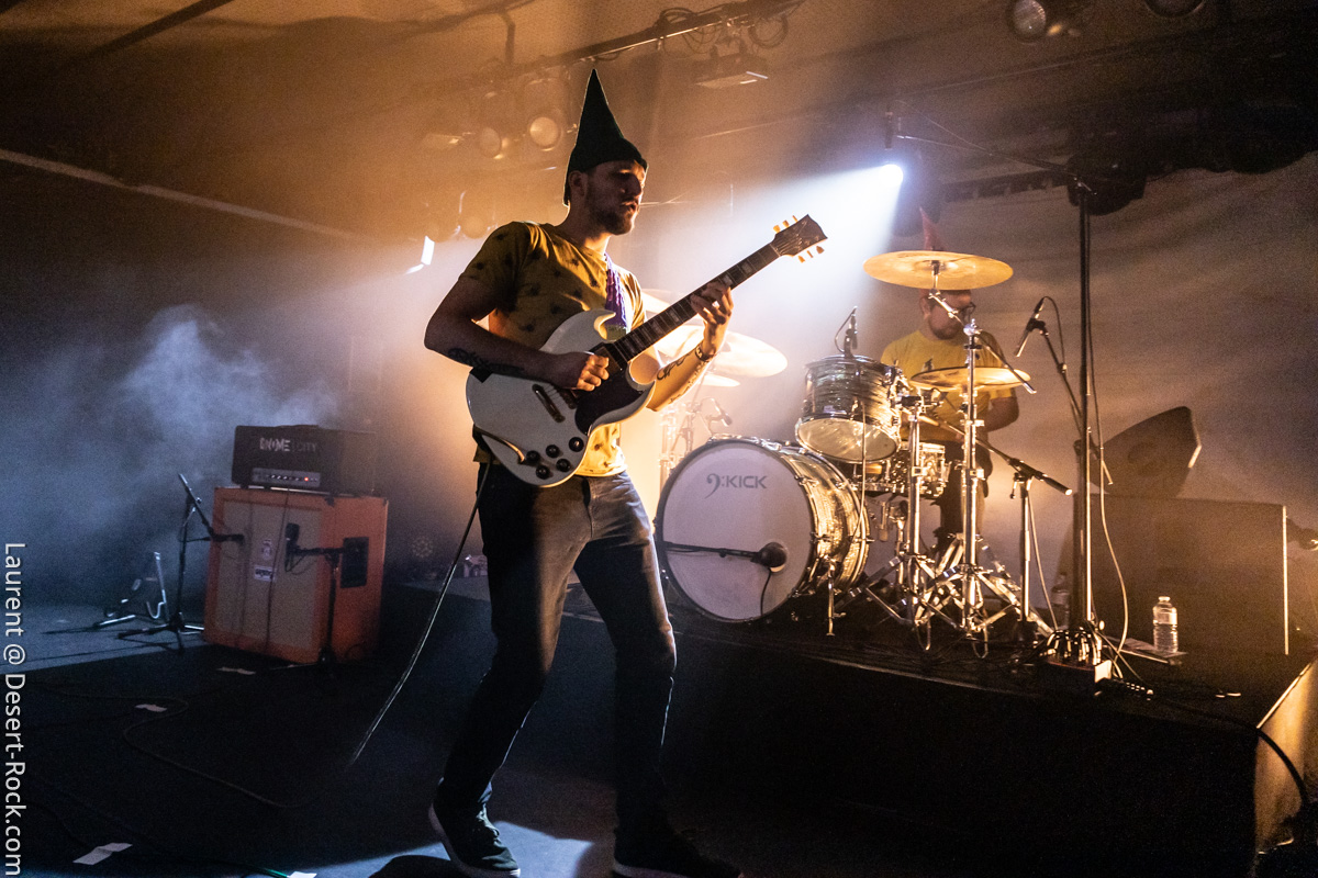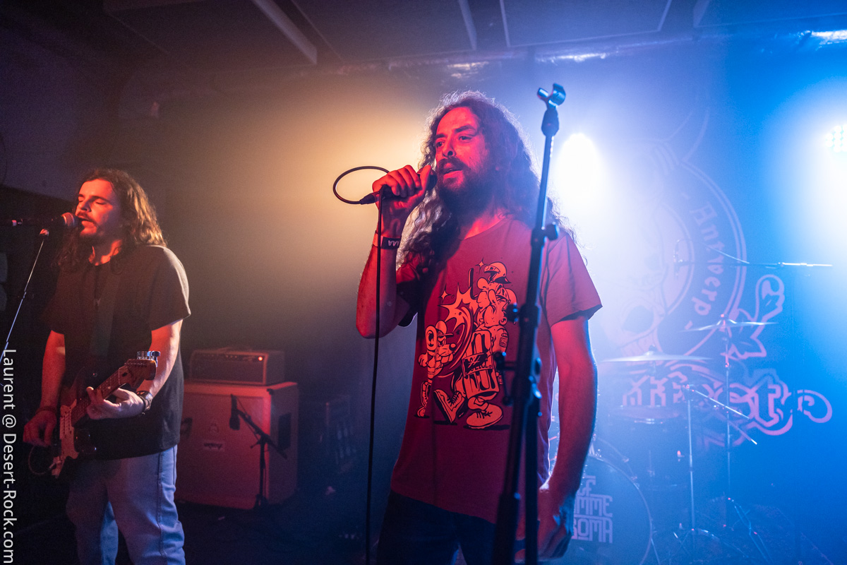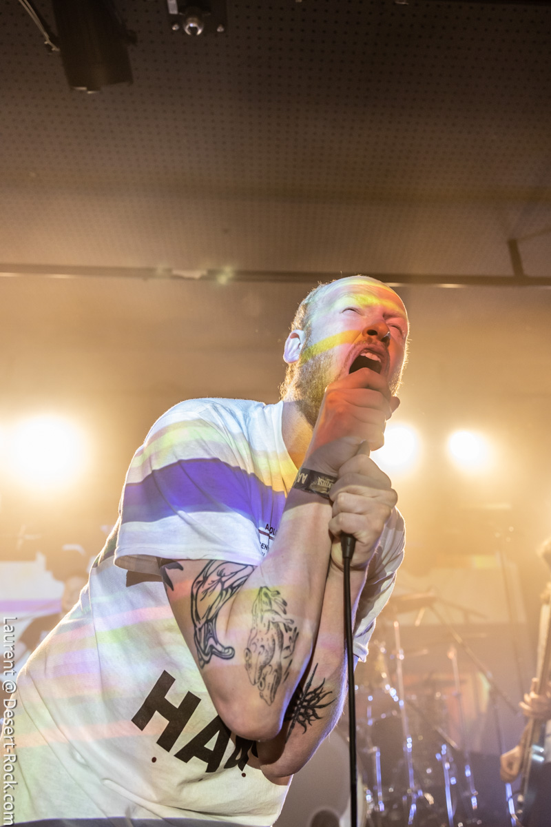 Ailleurs, c’est à l’étage, pour un nouvel exercice annoncé comme mélangeant de nombreuses influences dont certaines dans nos cordes. C’est la fête quand on découvre les deux batteries sur scène : ça ne sert pas à grand chose musicalement, mais question visuel et propension à faire bouger les corps c’est du meilleur effet. Les instrumentistes effectuant leurs derniers réglages nous rappellent agréablement le Kvelertak des temps jadis. Au taquet nous sommes pour nous démener comme des diablotins lorsque déboulent les bataves, mais rapidement nous sommes désorientées par ce post tout accompagnant des lignes de voix faiblement mixées et un peu perdues dans leurs reverb. Ça chie, mais ne nous convainc pas à prolonger au-delà du délai nécessaire pour rejoindre la Desert Stage.