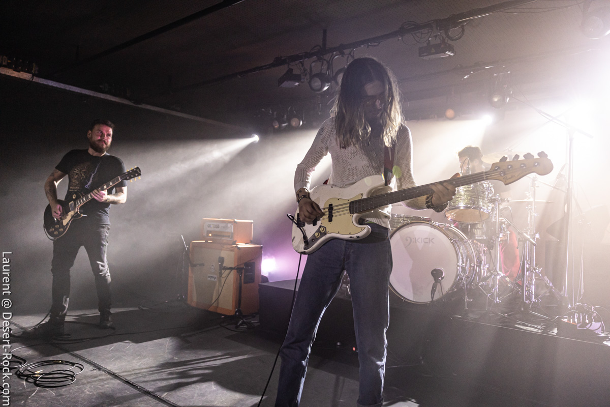 Même si nous avions déjà pas mal profité du gras durant cette première partie des festivités, il était impératif de s’en enfiler aussi dans le système digestif afin de maintenir nos physiques d’Apollon (qui font pâlir d’envie les représentants de tous les webzines de la terre). Nous avons ainsi loupé le départ de la diligence. Nous nous sommes rattrapés sur la fin du set du trio qui avait fort bien fait le plein de spectateurs sur la petite scène. Le trio originel de la capitale du Royaume de Belgique a déployé un rock parfaitement à l’aise dans ses phases les plus pugnaces, propices aux ondulements frénétiques du public, ainsi que dans ses phases plus aériennes terriblement envoûtantes. Un peu à l’image du petit dernier sorti avant l’été : « The Matter, Form and Power », les Belges font l’étalage de leurs talents sur scène.