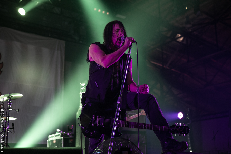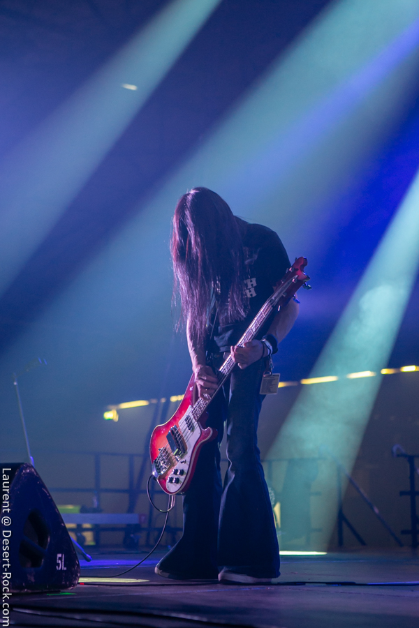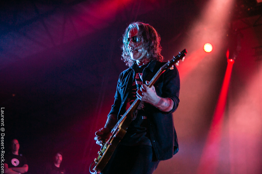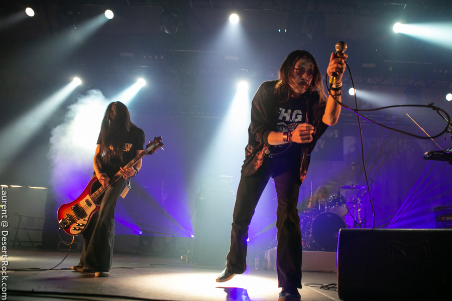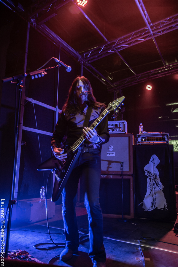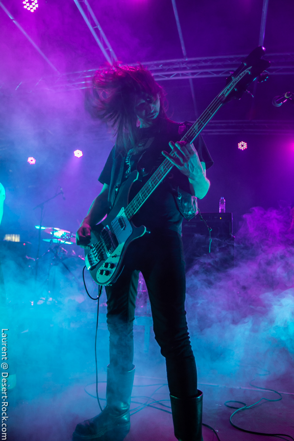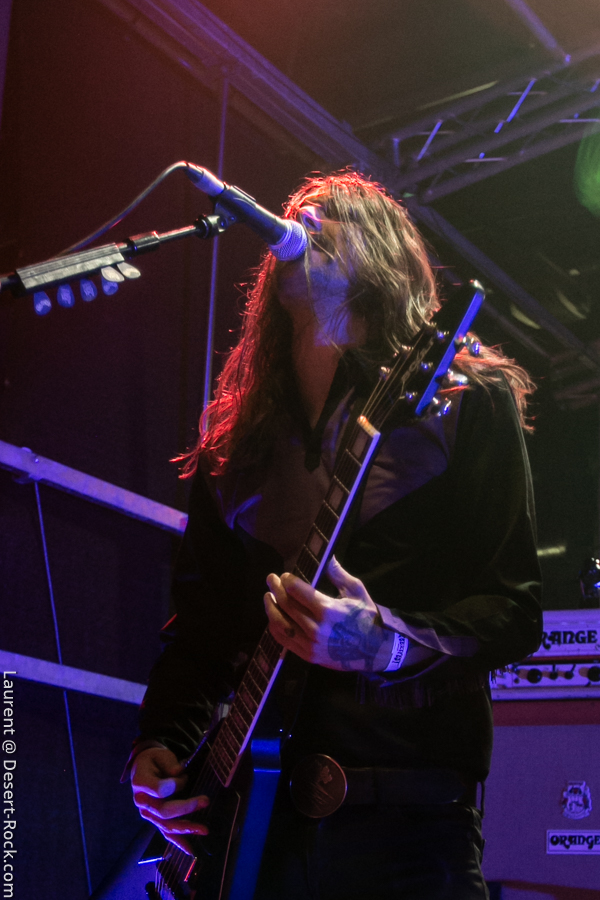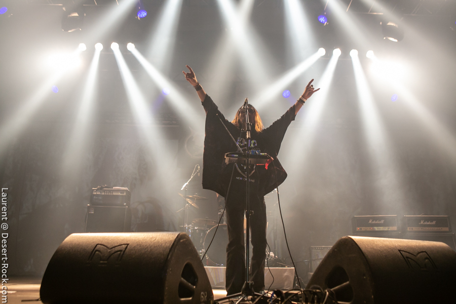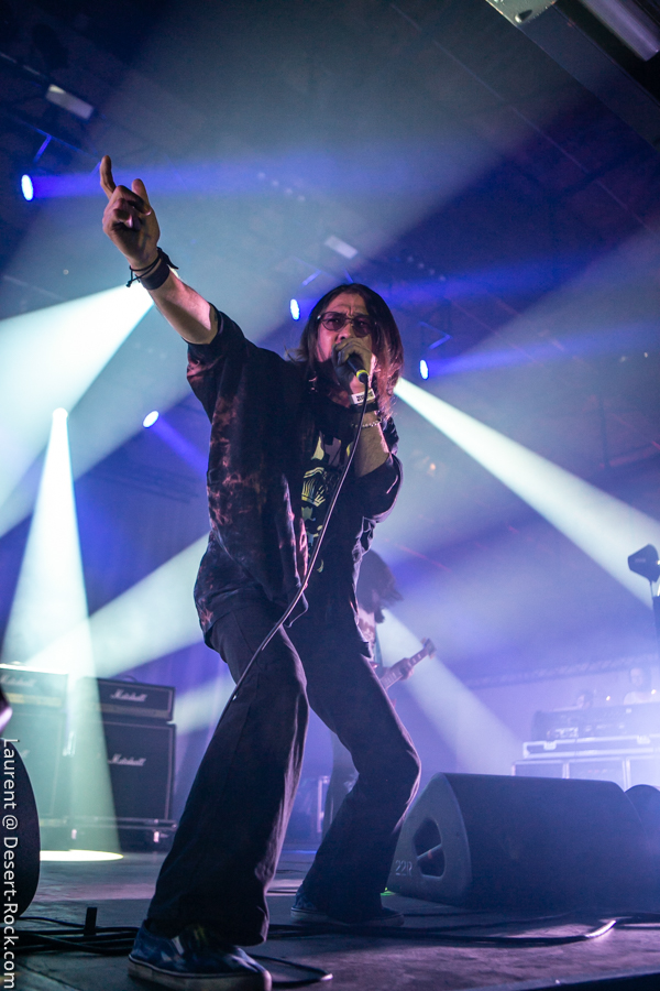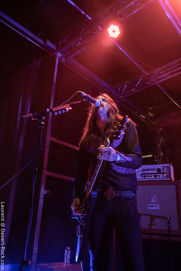 Avec un nouvel album audacieux et réussi sous le bras, il nous tardait de voir Death Alley sur scène pour bien en appréhender la substantifique moelle. Et nous fûmes rassurés. Déjà, le quatuor néerlandais a toujours la même prestance scénique et le même confort, bien aidés par Douwe Truijens bien sûr, frontman impeccable en tous points (et vocalement aussi), sachant que derrière, ça déroule. La set list est courte mais punchy, exercice de rigueur pour bien remplir les 45 minutes prévues sur ce créneau. Les anciens et nouveaux titres se mêlent, avec des classiques tels que le toujours efficace « Black Magick Boogieland » ou le plus récent mais punchy « Murder your dreams » qui fonctionne déjà bien. Le groupe s’approprie la petite scène et conquiert le public par la même occasion. Côté son, les premiers rangs sont les plus vernis (sachant que dès qu’on commence à se rapprocher de la régie son au centre du public, ça commence à être un peu brouillon). Mais pas de quoi gâcher le concert. En synthétisant les genres pour hybrider son proto-metal de base, Death Alley s’est créé une place à part dans le paysage musical et il le démontre aujourd’hui encore, avec la manière.