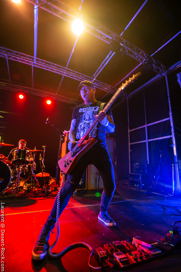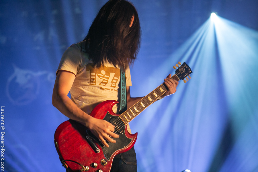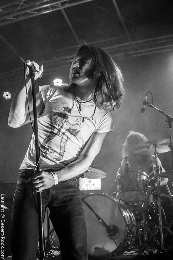 Premier groupe allemand du week-end avec Pretty Lightning et son duo guitare/batterie plus qu’efficace. L’absence d’une bonne grosse basse se fait rapidement ressentir mais les deux compères germains tiennent la scène comme il faut et le public adhère à leur mélange de rock-psyché (un peu) stoner. Le groupe manque un peu d’originalité et n’aurait pas eu le même succès en effectuant un set de plus de 40 minutes. Mais l’ambiance est déjà palpitante dans l’énorme hangar de l’Arena, ce qui nous laisse présager de bonnes choses pour la suite.